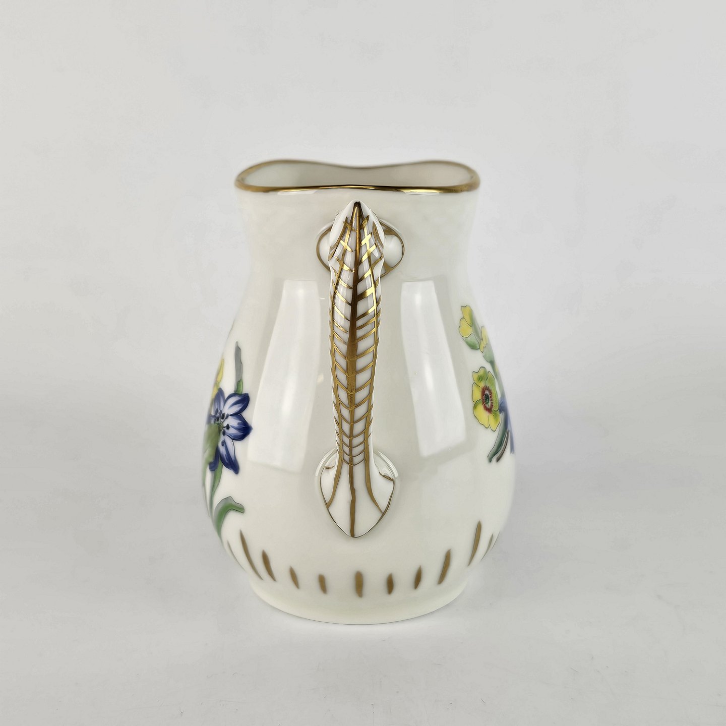 Njal er af creme farvet glaseret porcelæn, præget med skæl lignende mønster. Stellet er dekoreret med gul og blå blomster samt mønster af guld i kanten. Lettere brugsspor kan forekomme