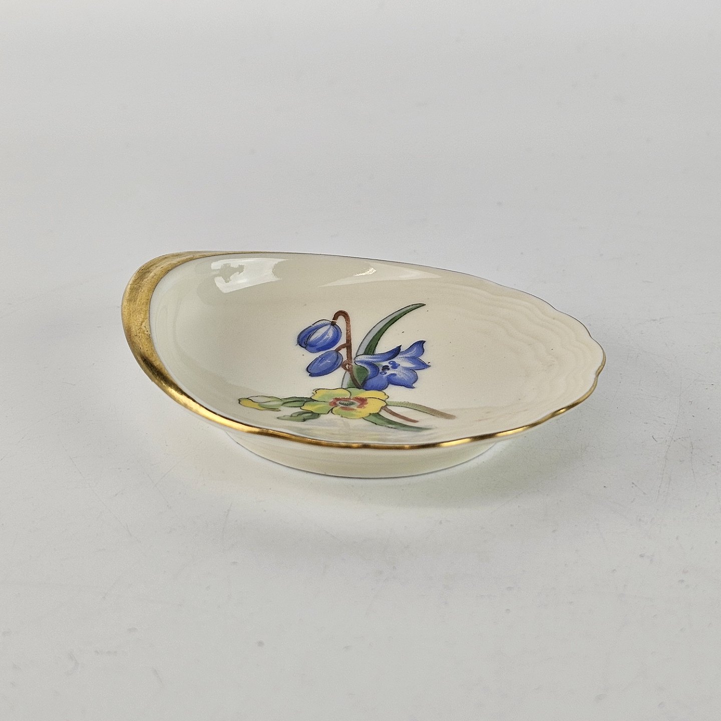 Njal er af creme farvet glaseret porcelæn, præget med skæl lignende mønster. Stellet er dekoreret med gul og blå blomster samt mønster af guld i kanten. Lettere brugsspor kan forekomme