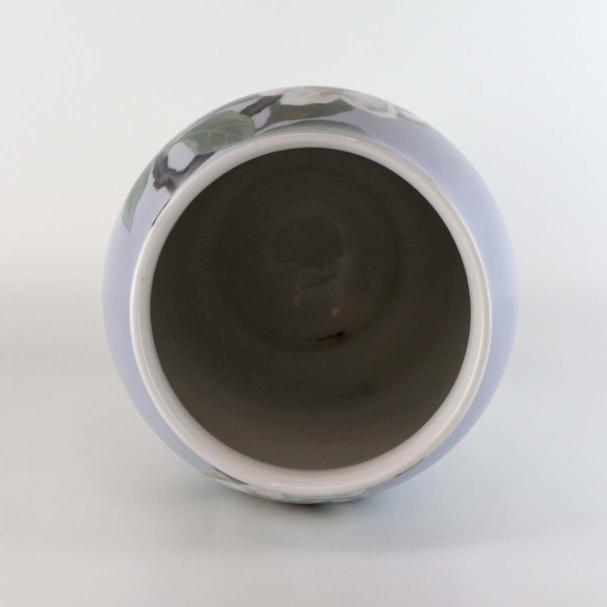 Kongelig vase i porcelæn med motiv af grene med æbleblomster på gradueret blå baggrund. Nr. 53/1217