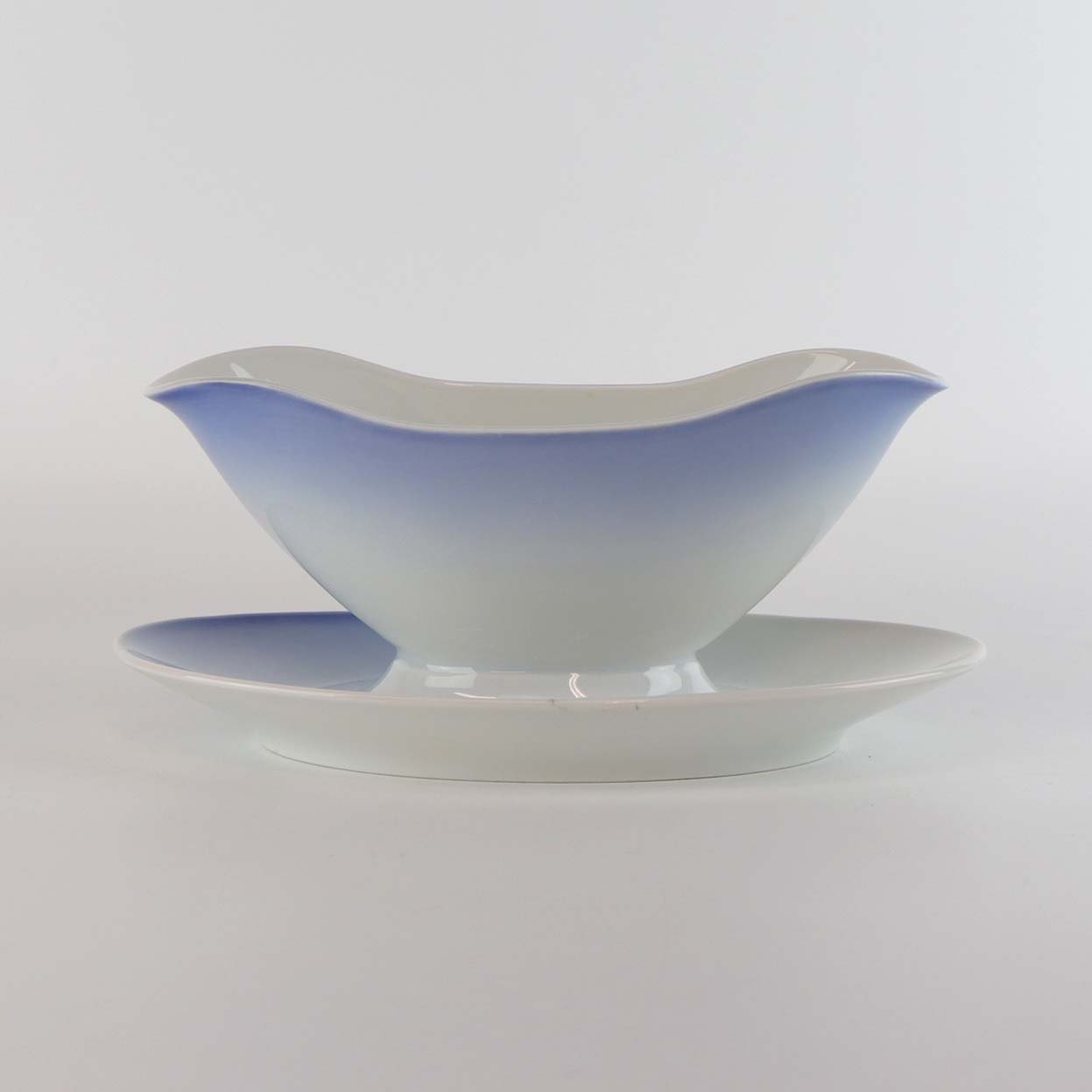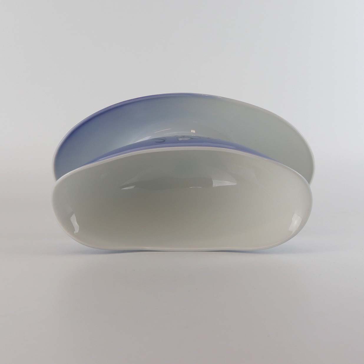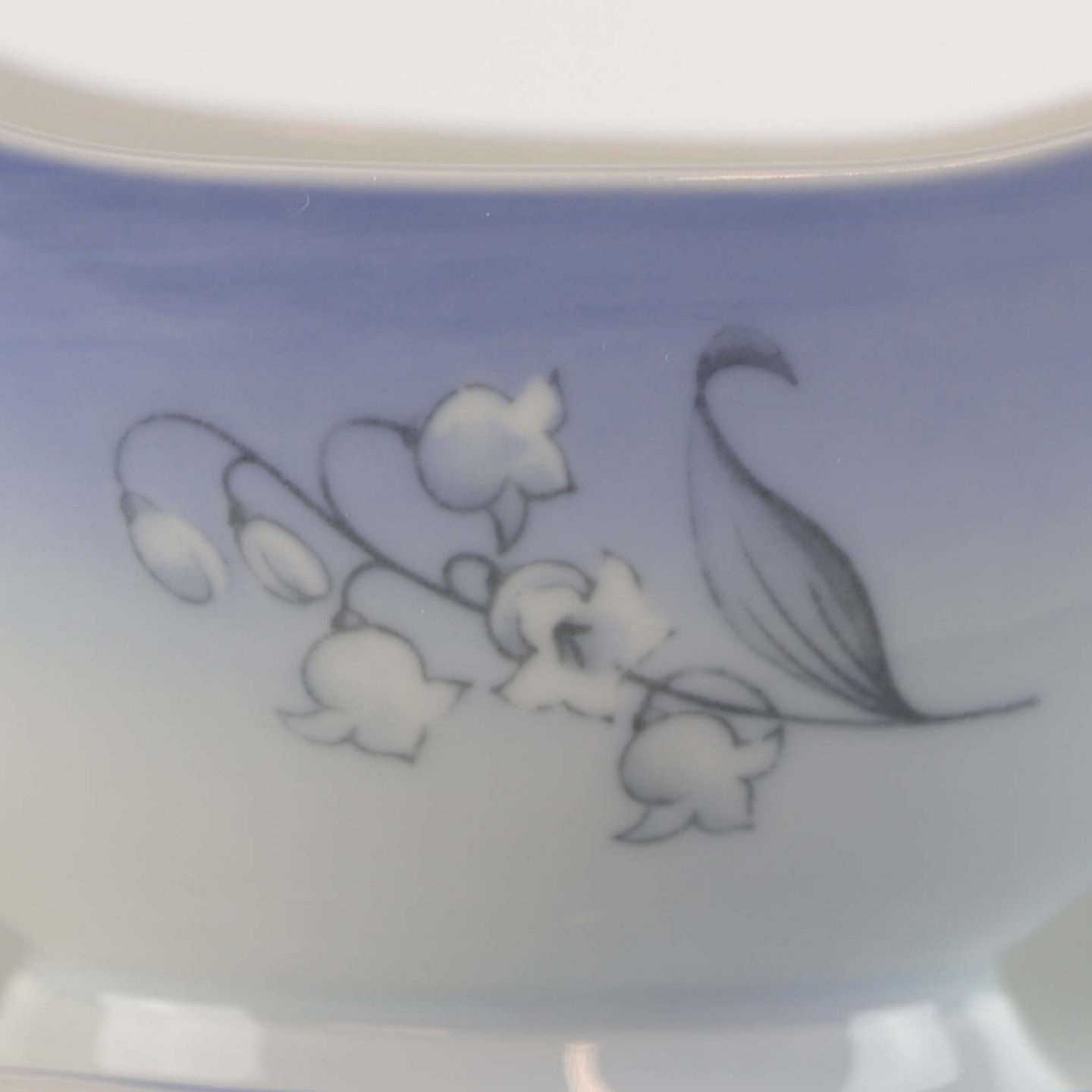 Stellet er fra 1970 og udformet i glat porcelæn med gradueret blålig tone samt motiv af en liljekonval.