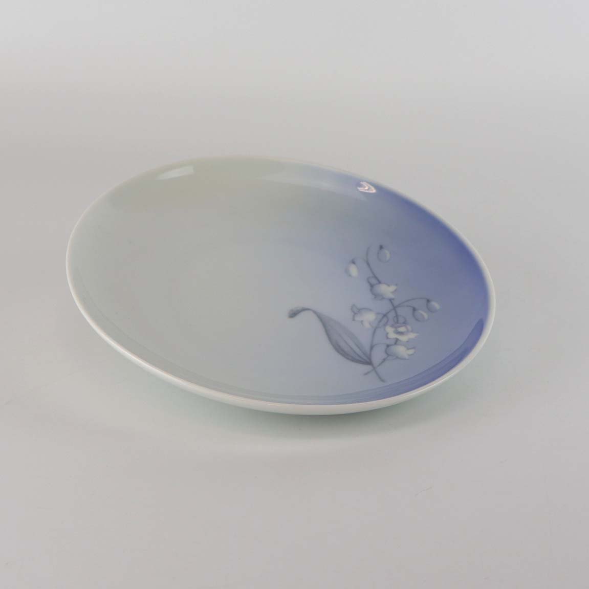 Stellet er fra 1970 og udformet i glat porcelæn med gradueret blålig tone samt motiv af en liljekonval.