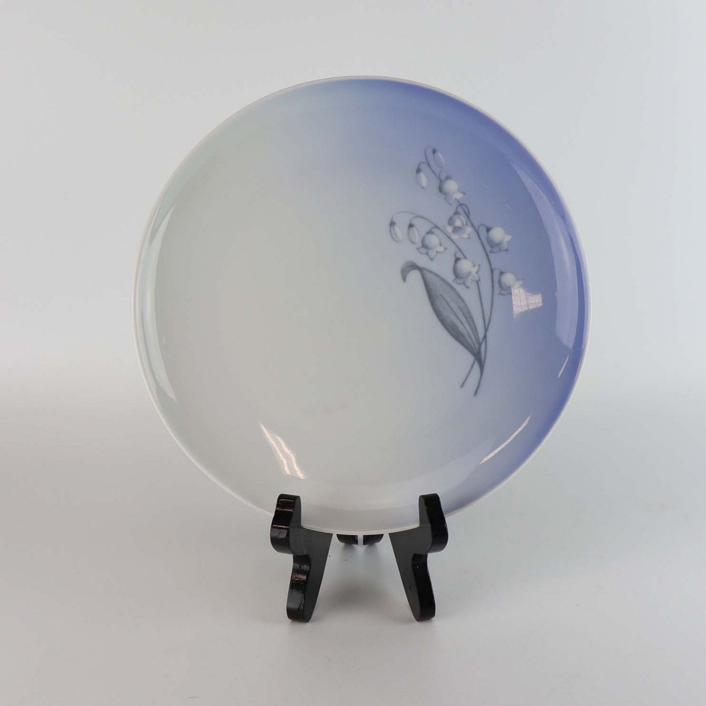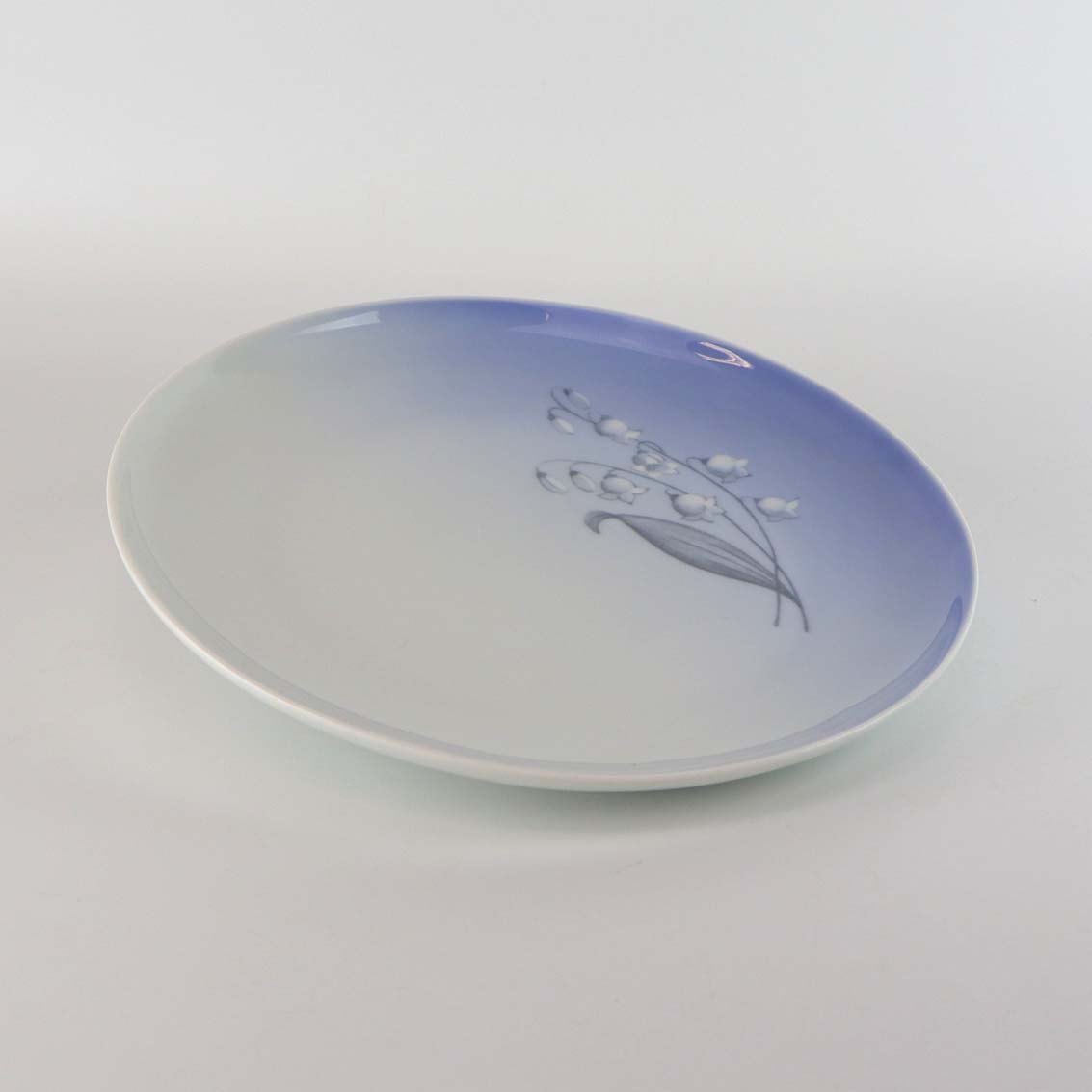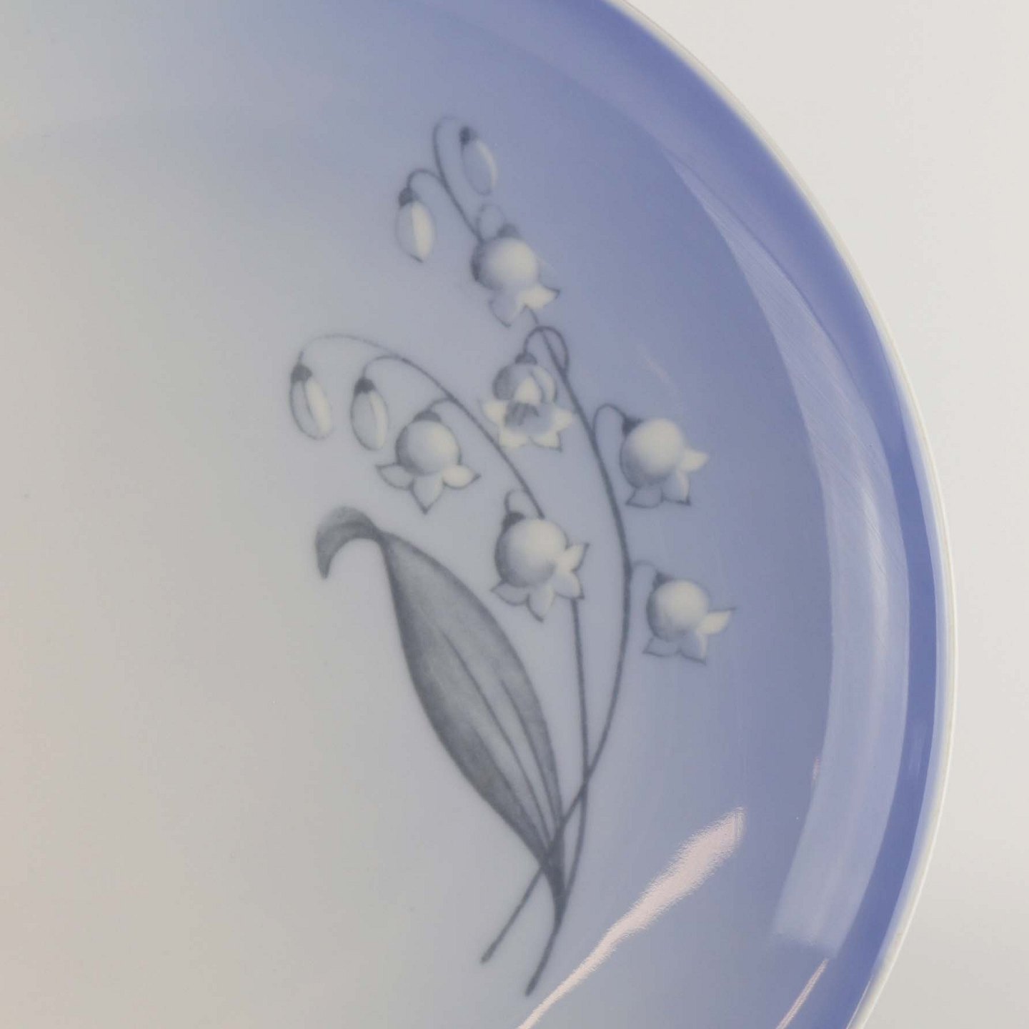 Stellet er fra 1970 og udformet i glat porcelæn med gradueret blålig tone samt motiv af en liljekonval.