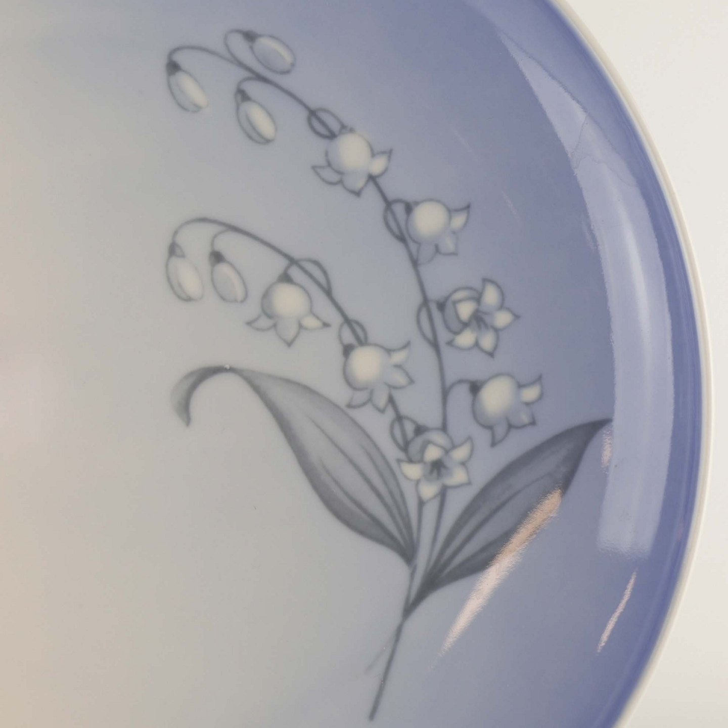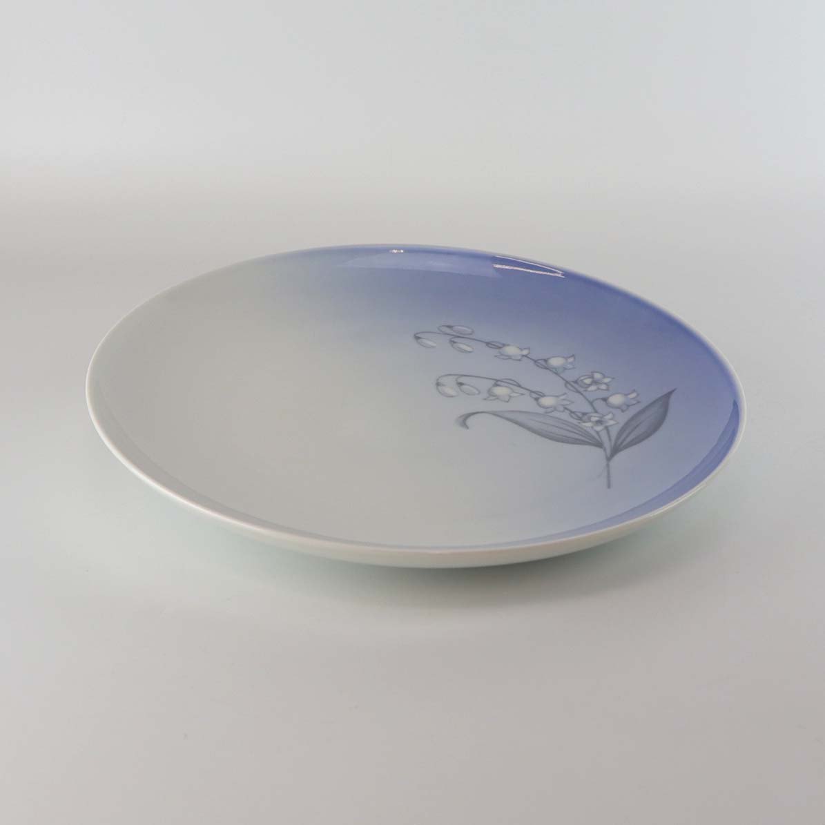 Stellet er fra 1970 og udformet i glat porcelæn med gradueret blålig tone samt motiv af en liljekonval.