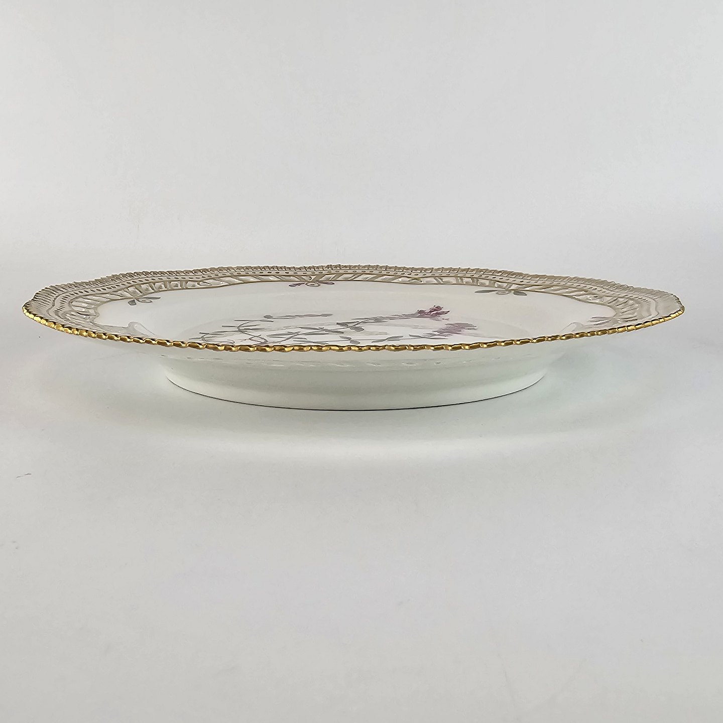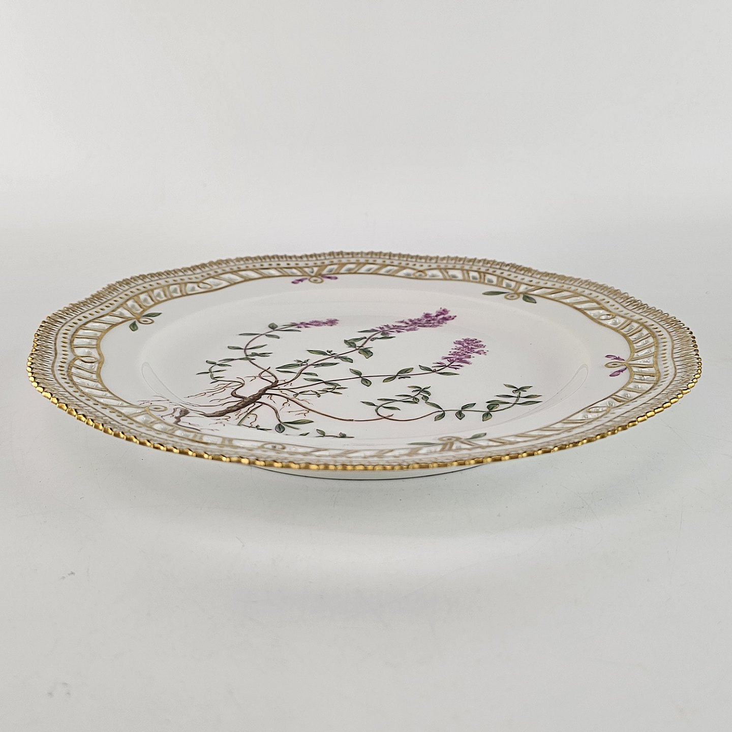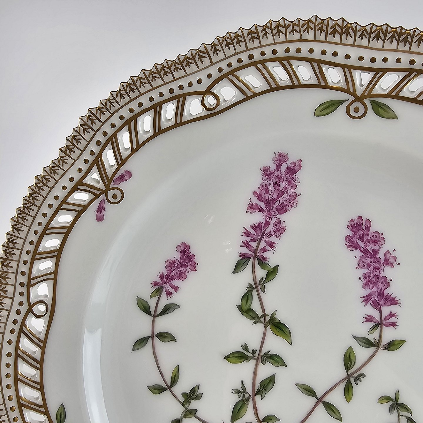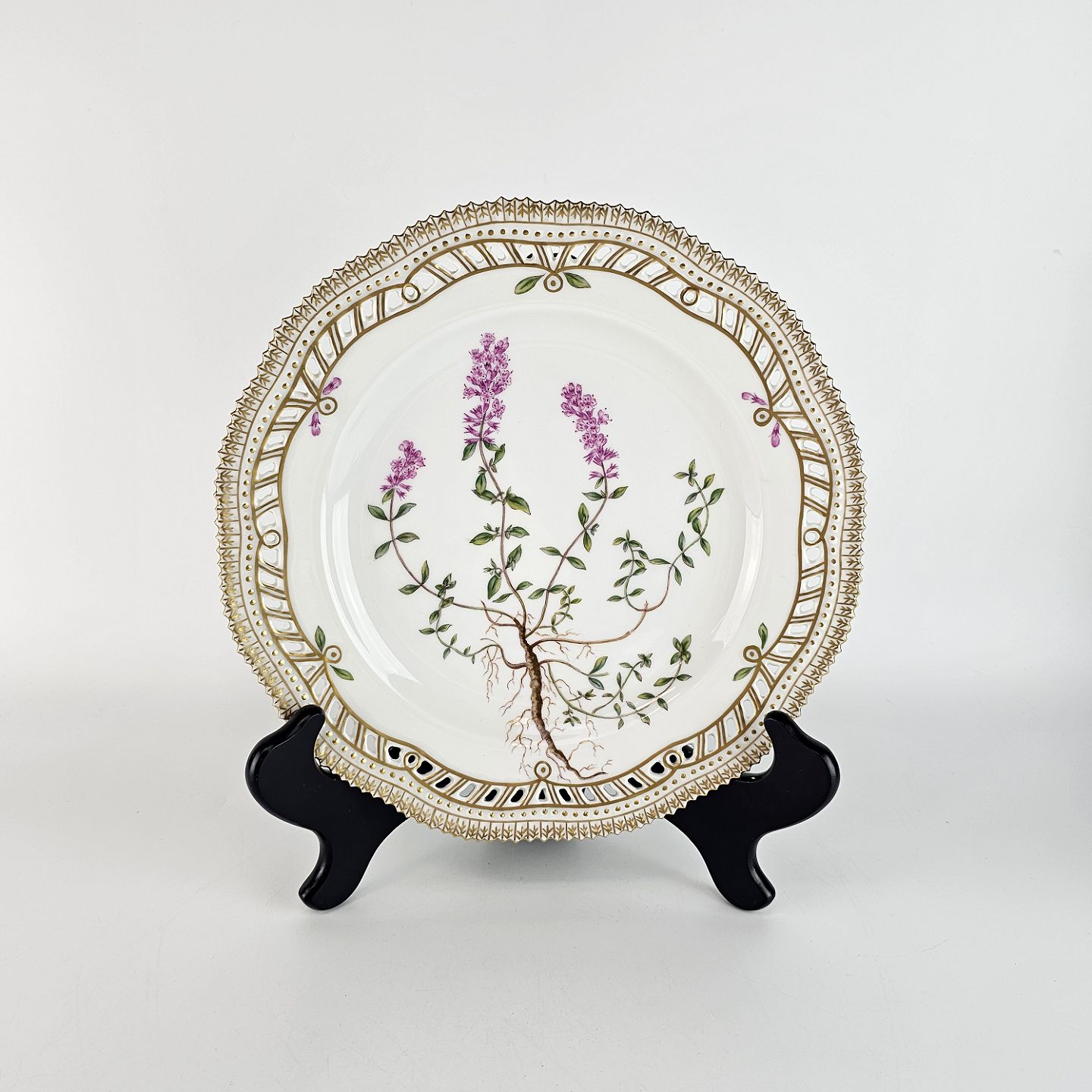 Tallerken af porcelæn med gennembrudt kant. Dekoreret med motiv af timian. Thymus 20/3554