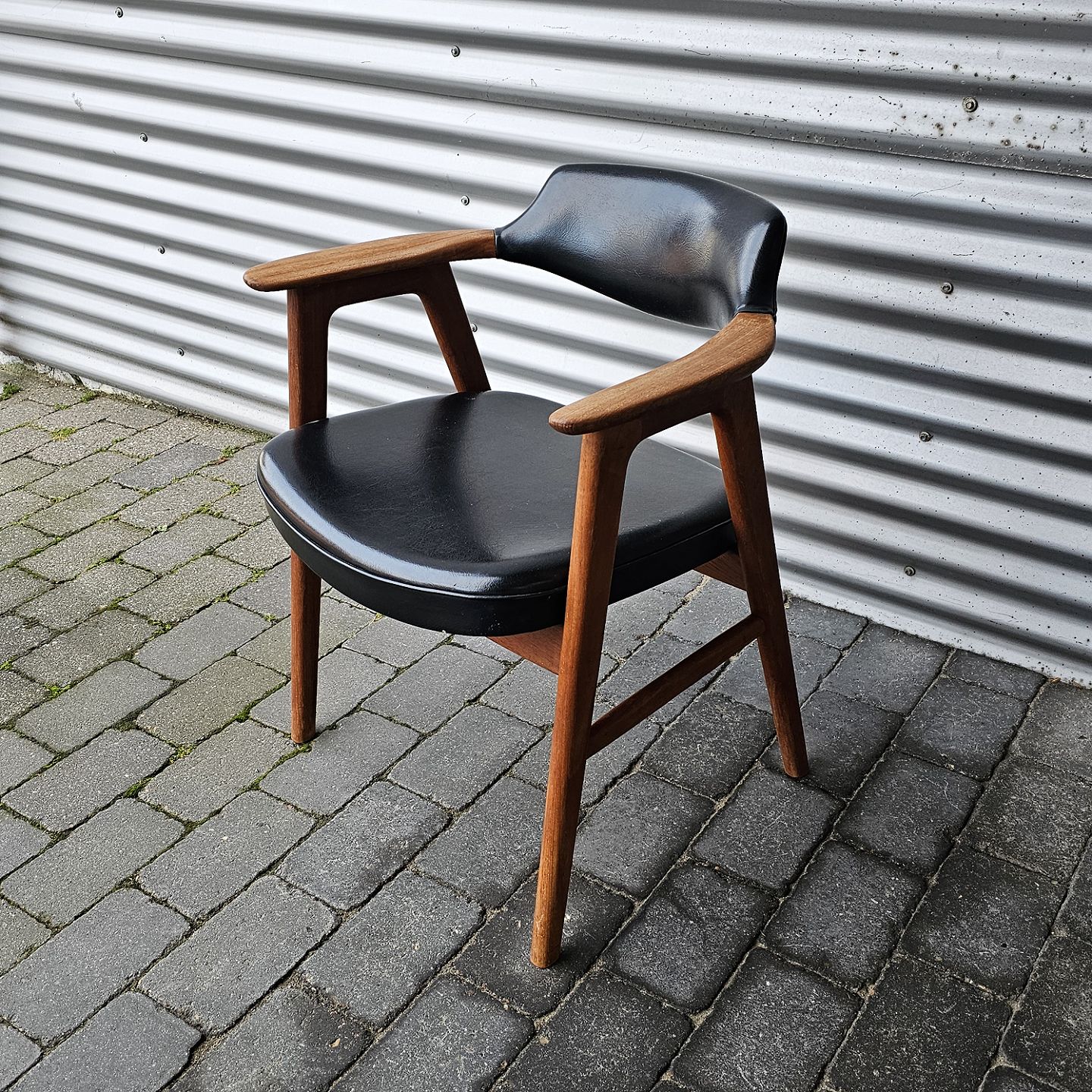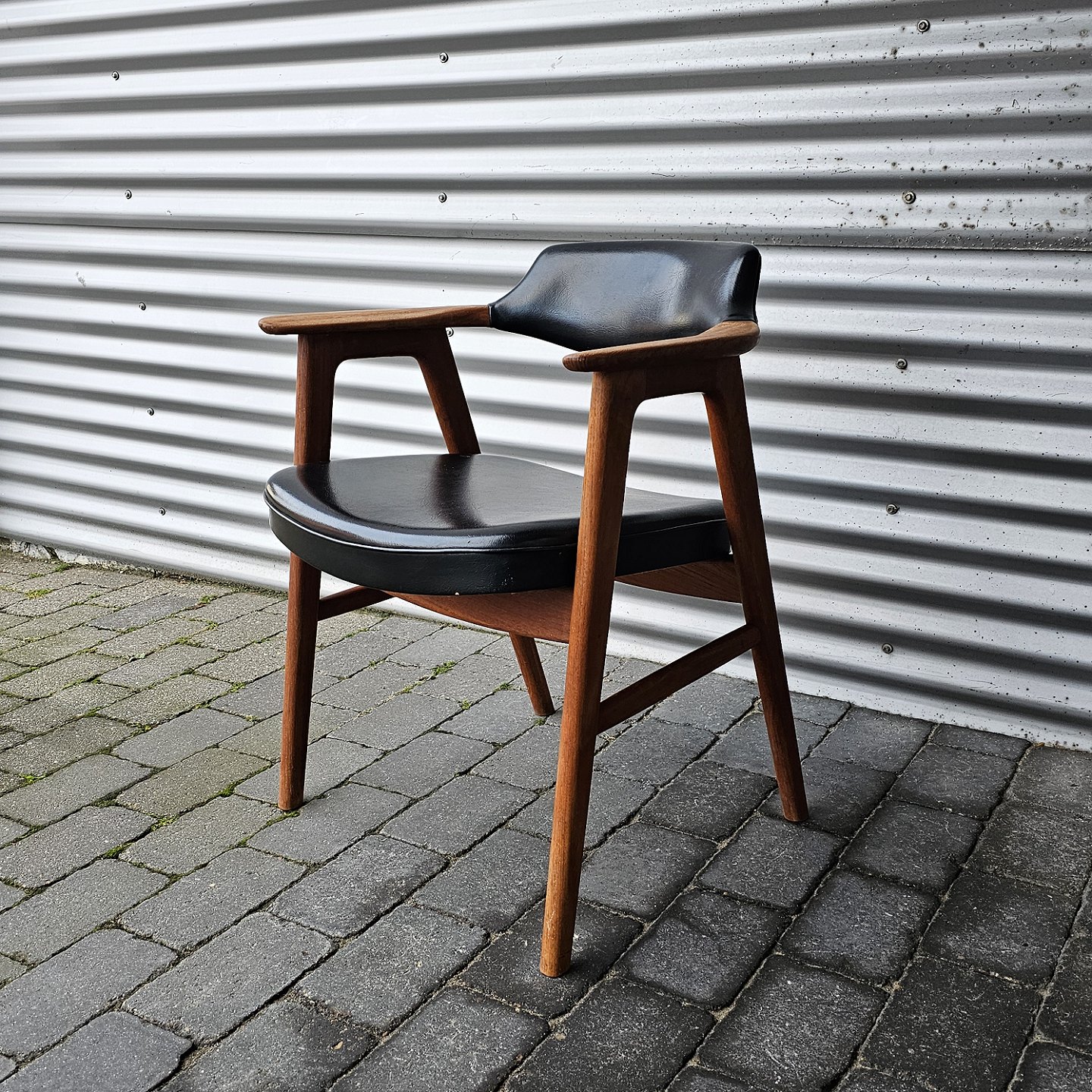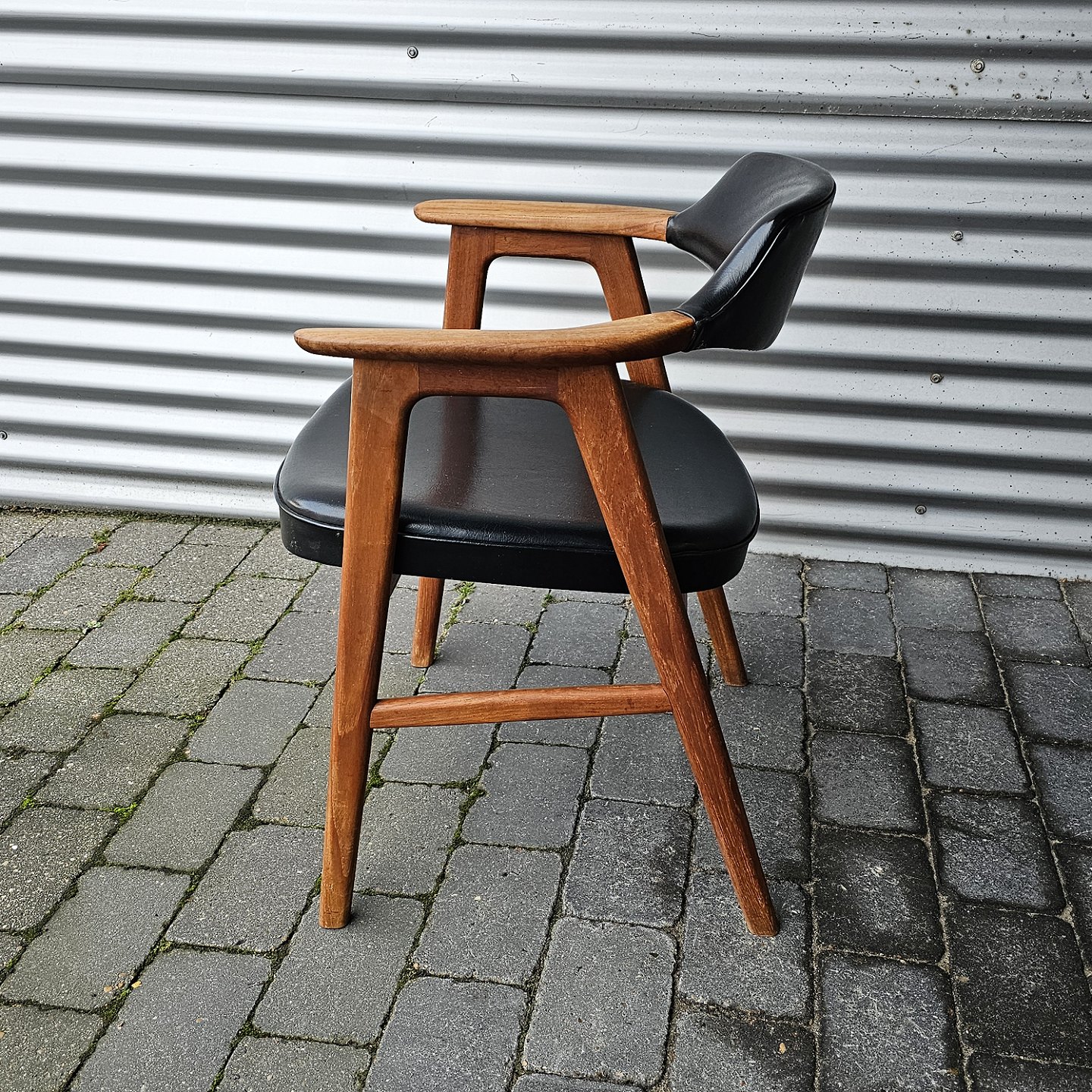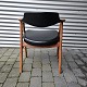 Armstol med stel i teaktræ og letpolstret ryg og sæde betrukket med sort nappa