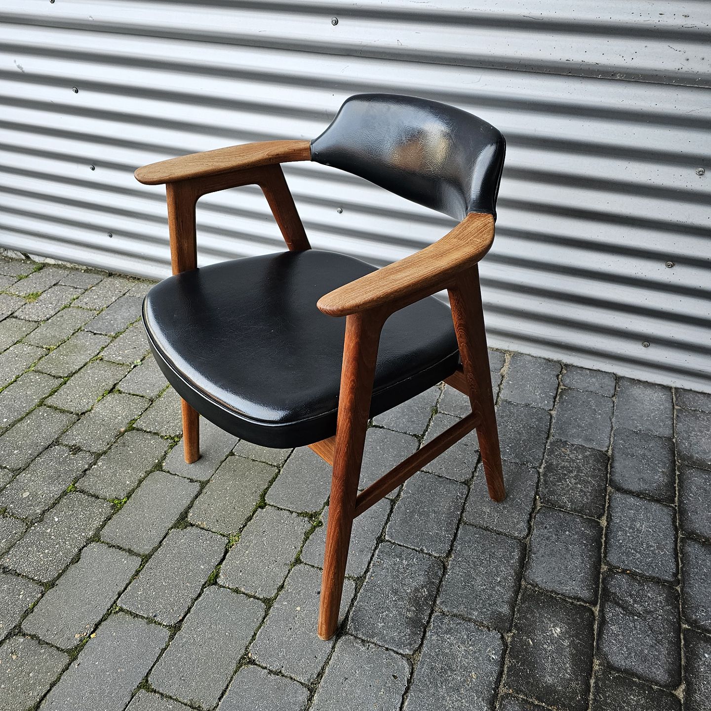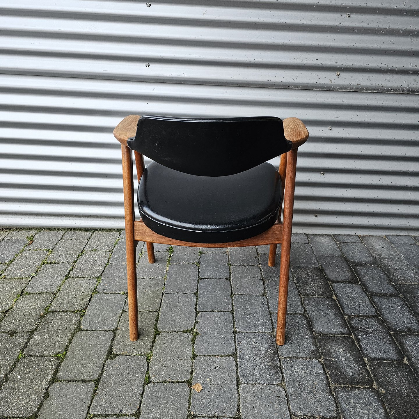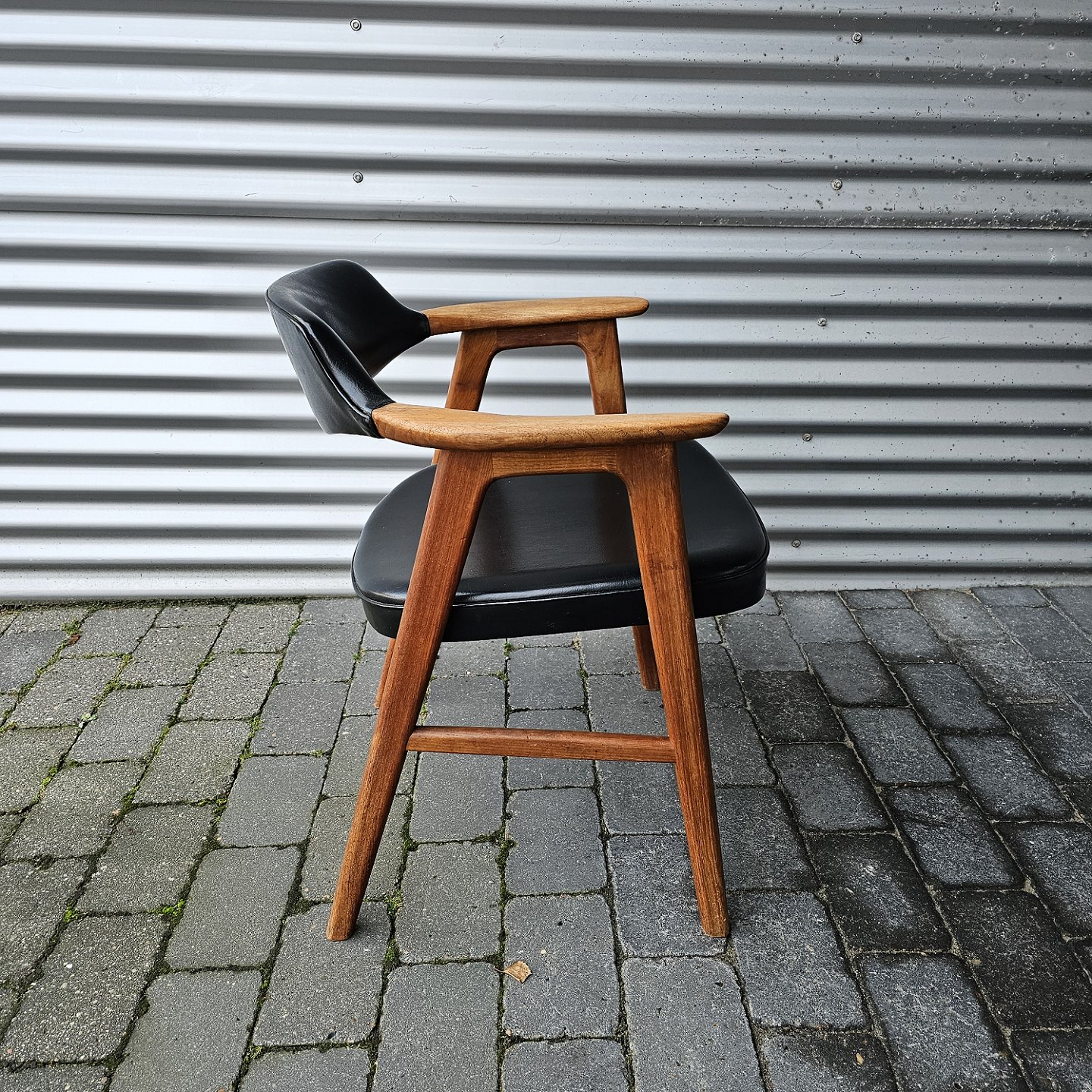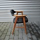 Armstol med stel i teaktræ og letpolstret ryg og sæde betrukket med sort nappa