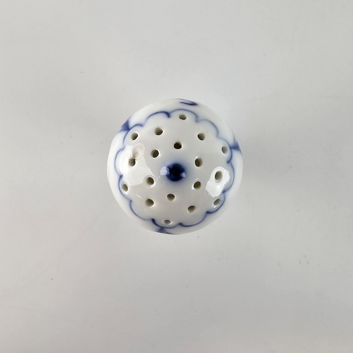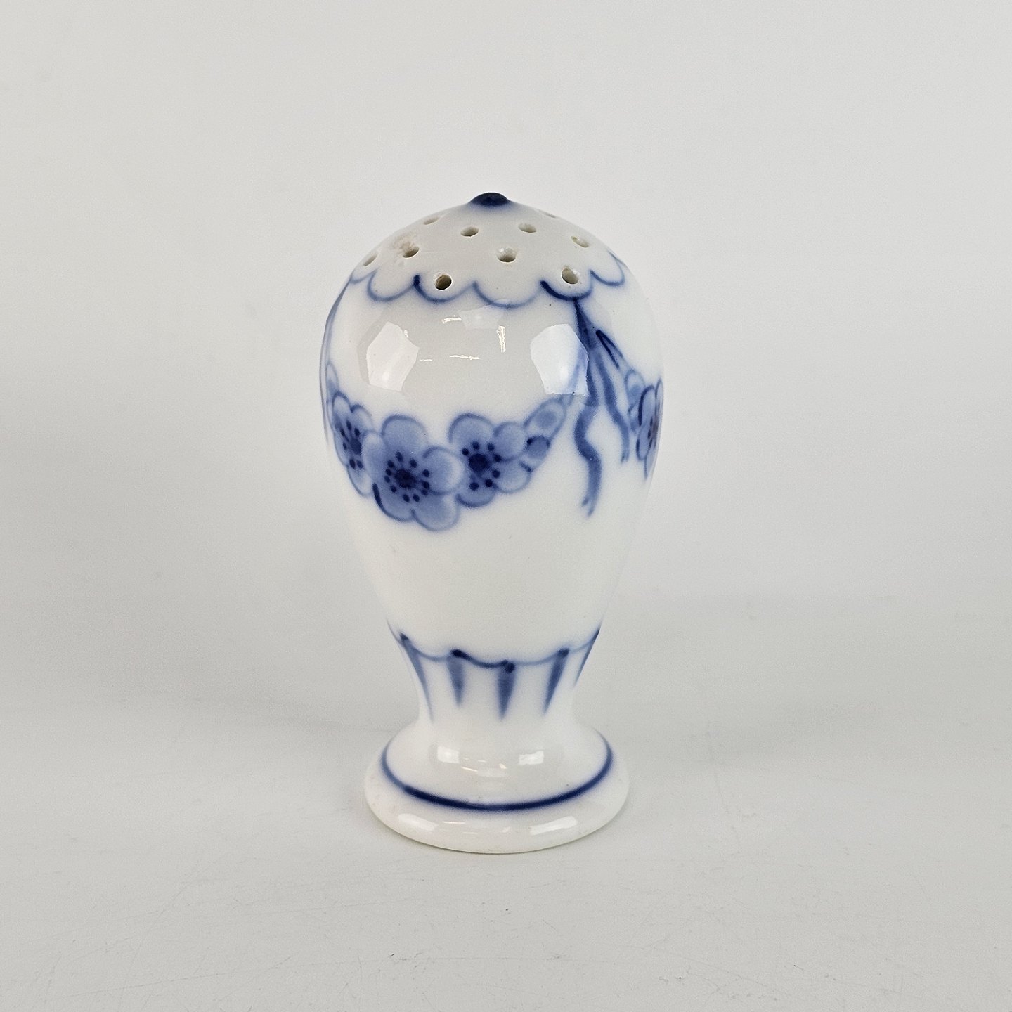 Hvidt porcelæn med motiv af guirlander med blå blomster