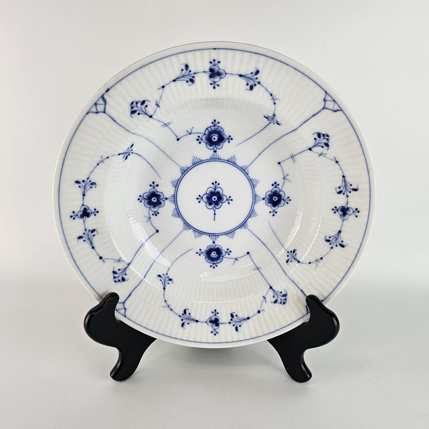 Kgl dyb tallerken fra stellet Musselmalet, riflet. Nr 1/167.