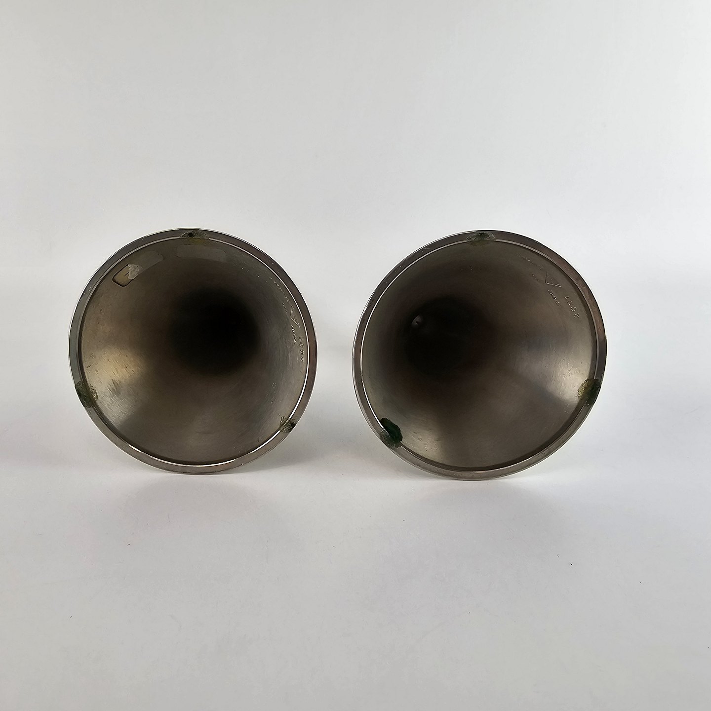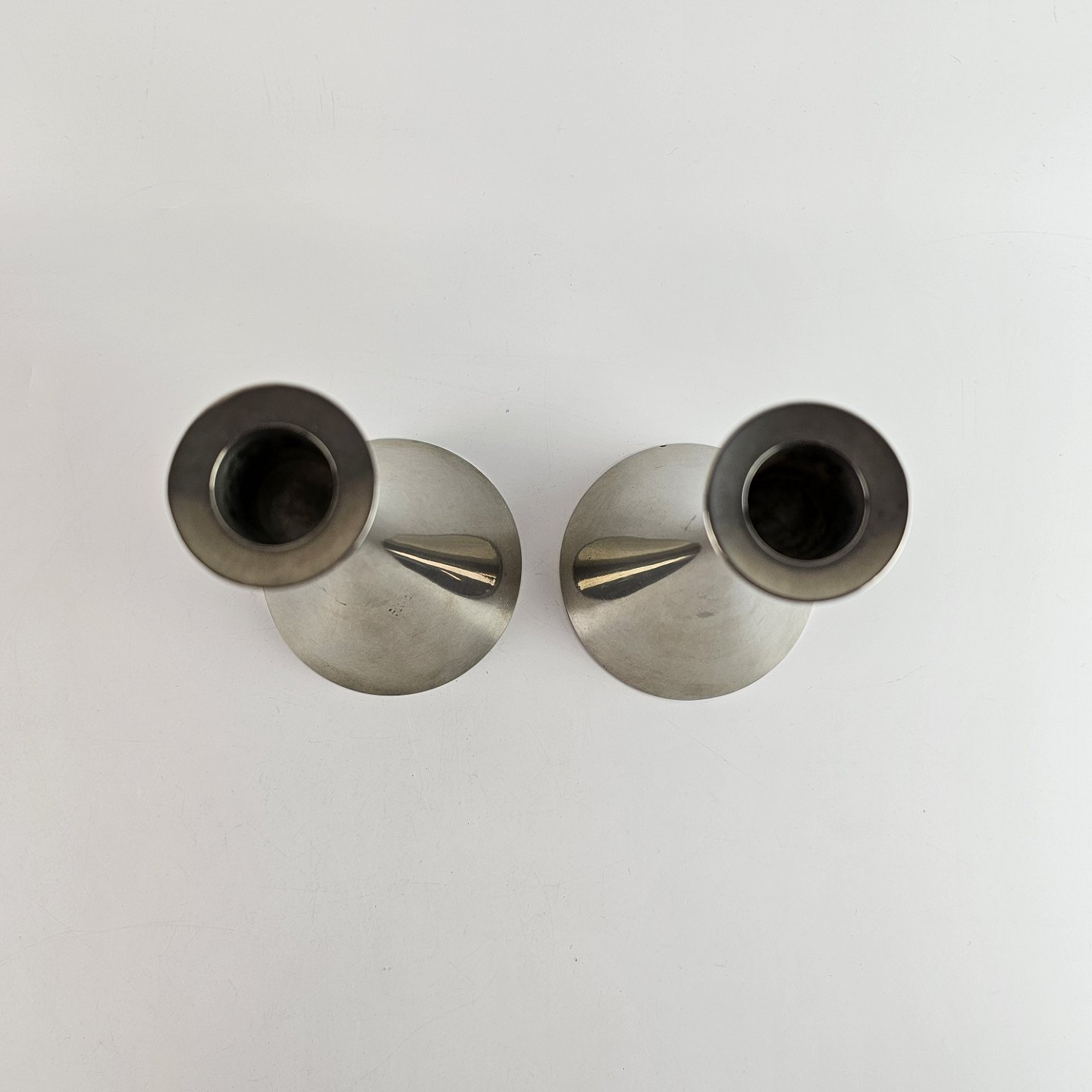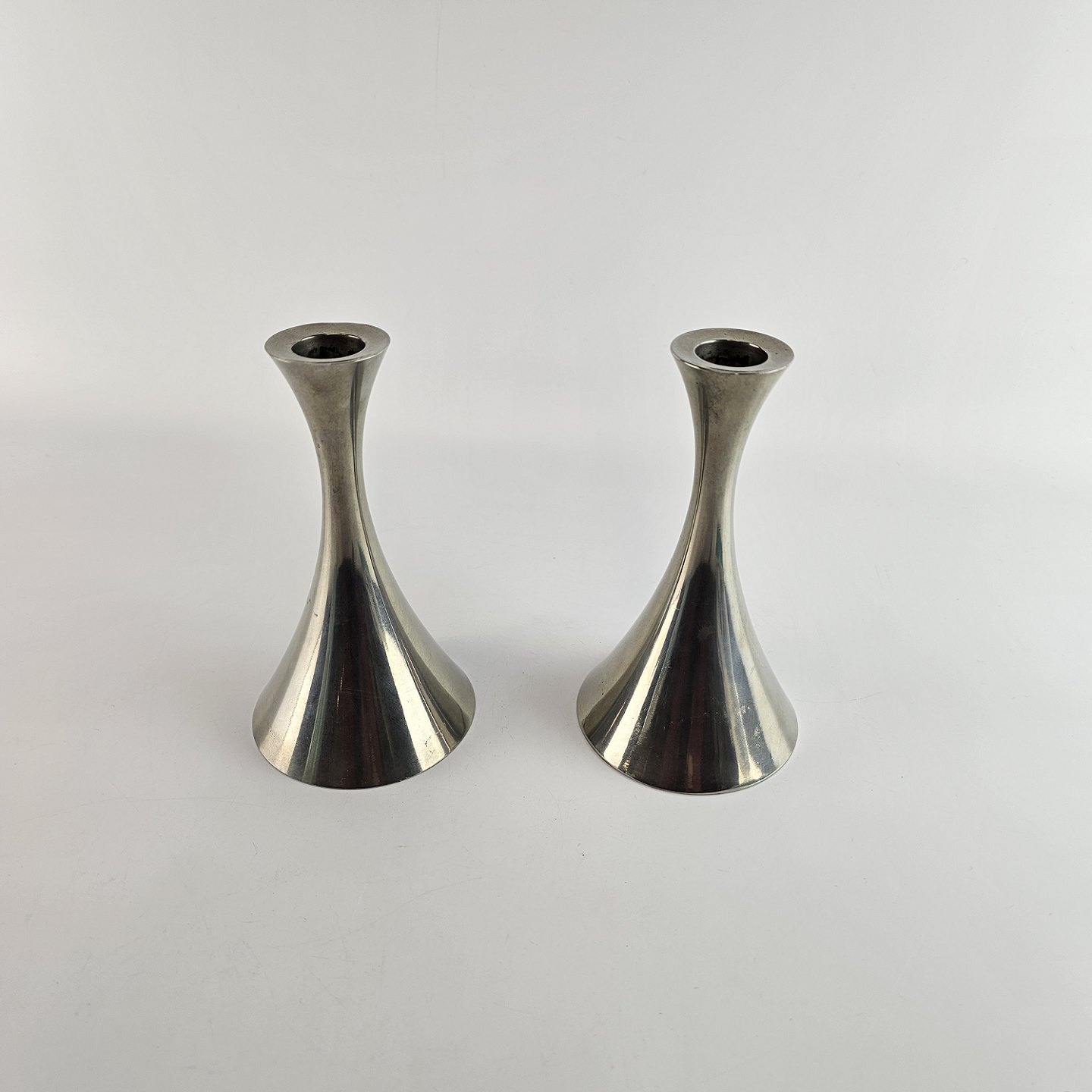 Et sæt tragtformede lysestager i støbt tin. Nr. 2691