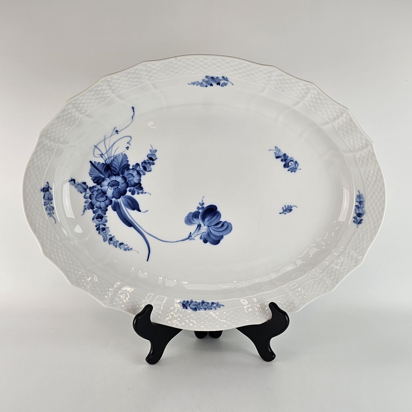 Stort ovalt fad fra stellet Blå Blomst Svejfet.
