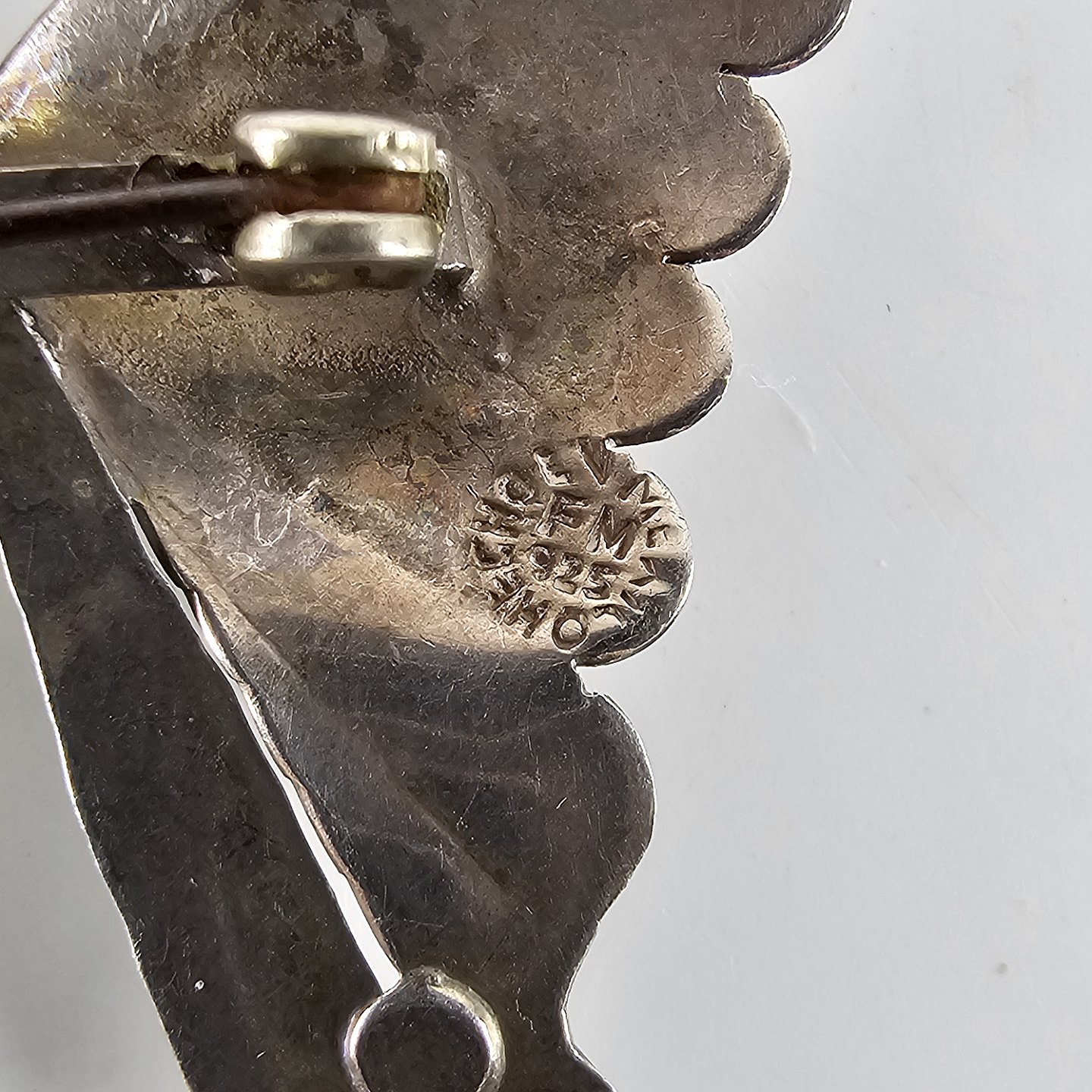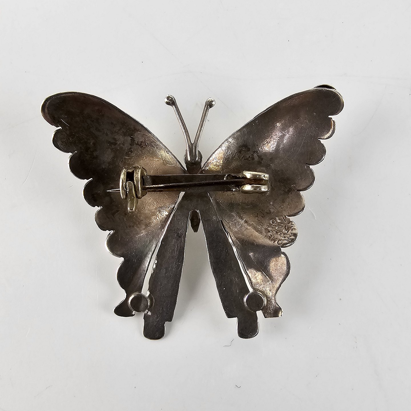 Broche i sterlingsølv formet som sommerfugl, med to sten af Turkis.
