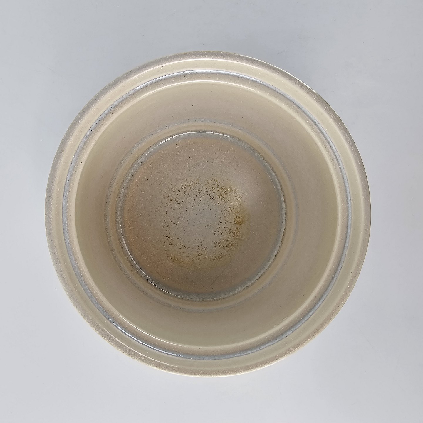 Skål med låg af stentøj og dekoreret med en grønlig nuance glasering.