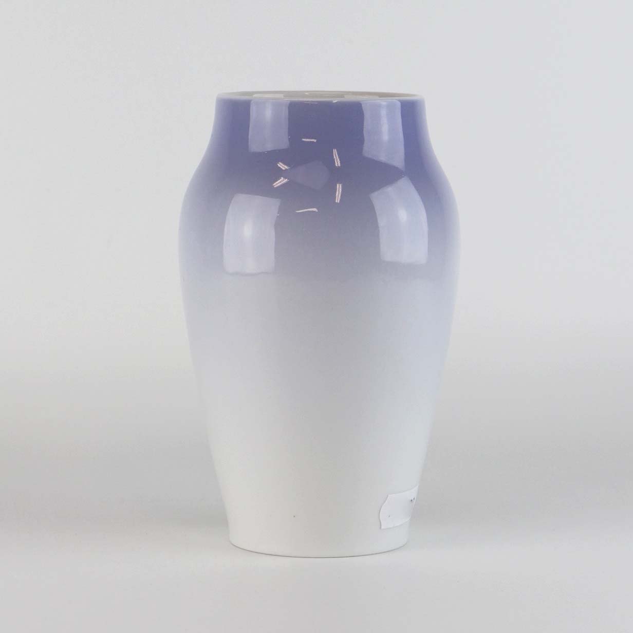 Vase i porcelæn med motiv af blomstrende hvid orkide på gradueret blå baggrund. Nr. 2668/2037