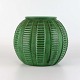 Kuglevase i grøn glaseret keramik med rillet mønster