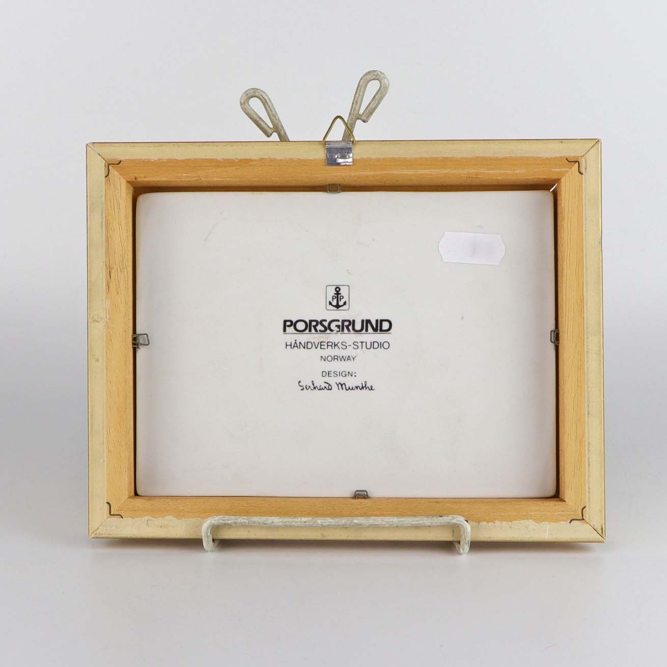 Tryk af tegning på porcelænsklinke i træramme med titlen The Suitors. Original tegningen var oprindeligt udført i kul og akvarel på papir.