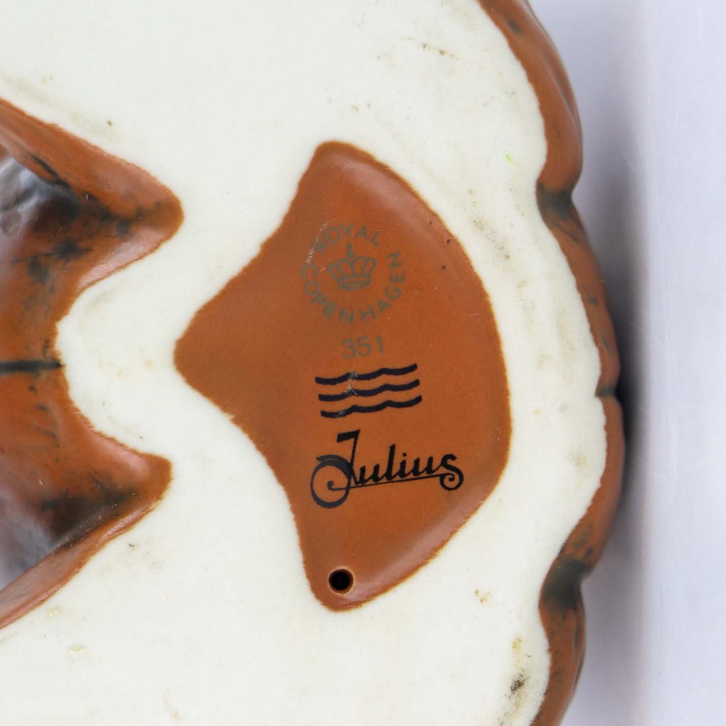 Kongelig figur i porcelæn med motiv af en brune siddende bamse med navnet Julius. Nr. 351
