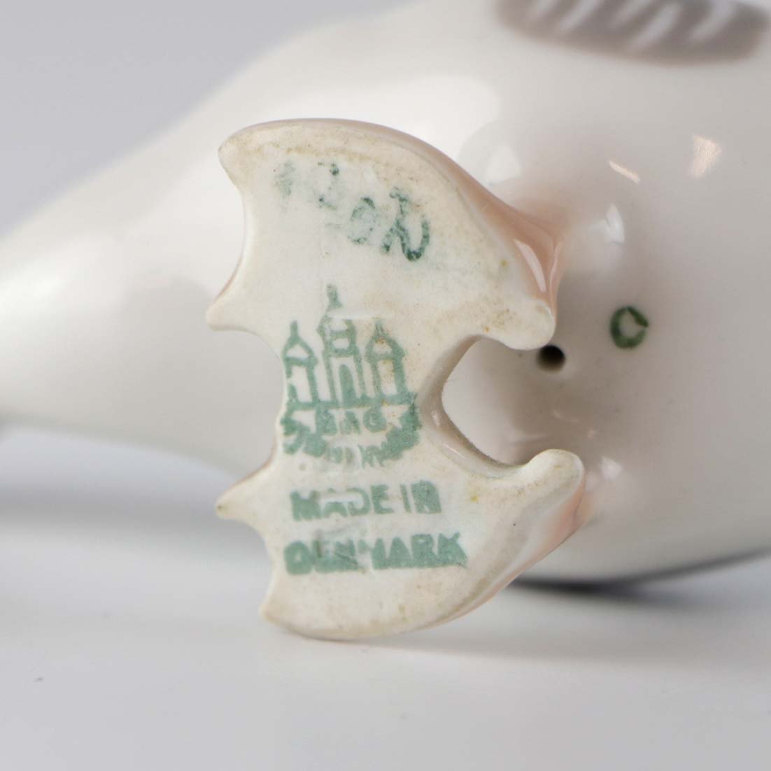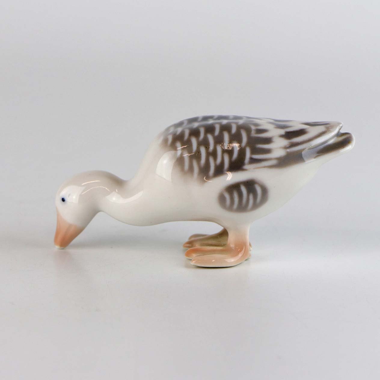 Figur i porcelæn med motiv af en gås eller en gase med næbbet i jorden