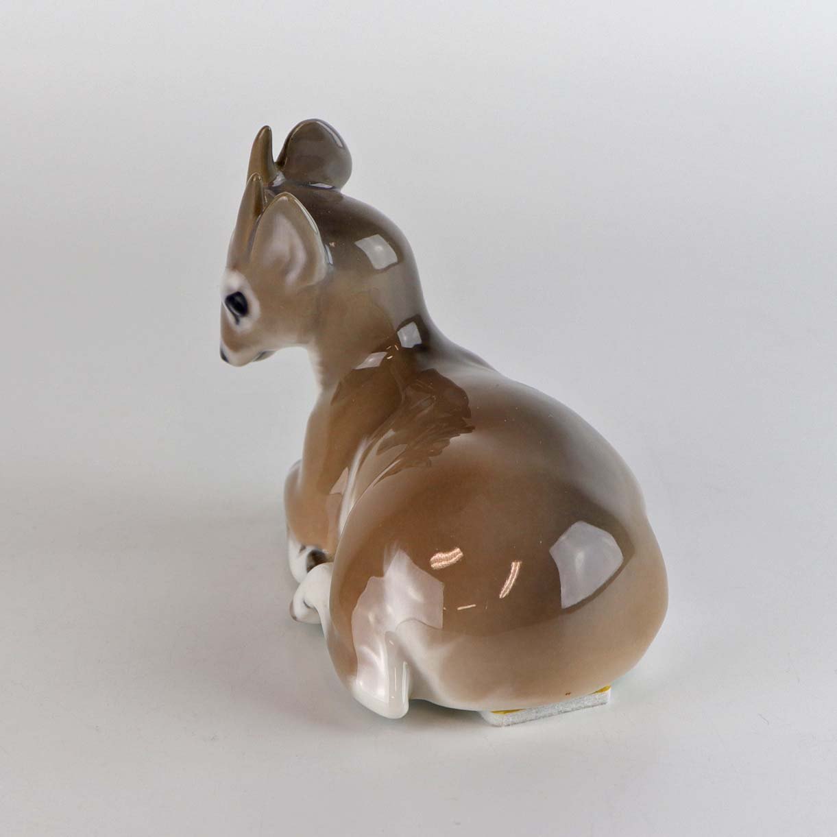 Kongelig figur i porcelæn med motiv af liggende rådyr eller dådyr med horn. Nr. 2648