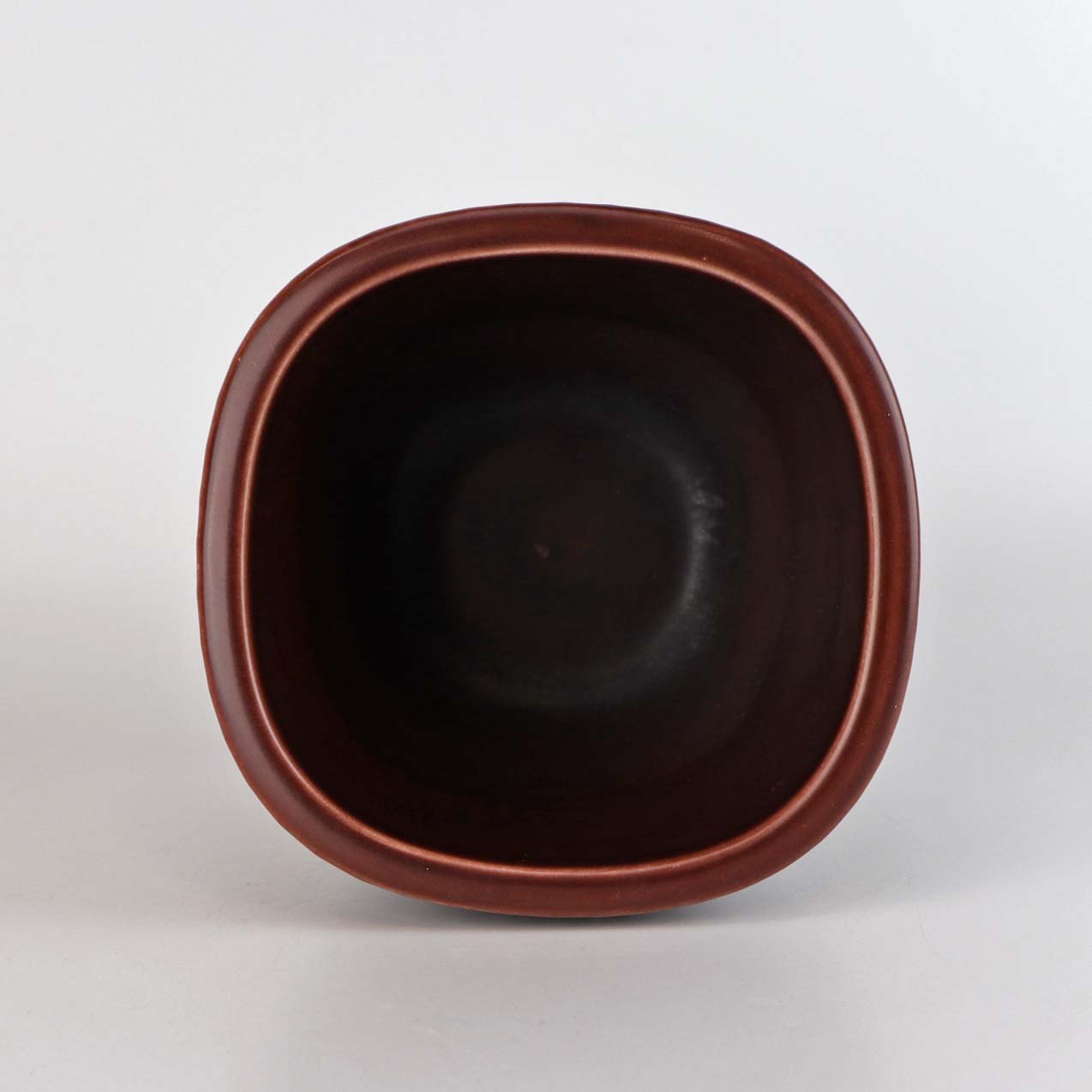 Kantet Marselis vase i rødbrun fajance med rillet mønster. Nr. 2646