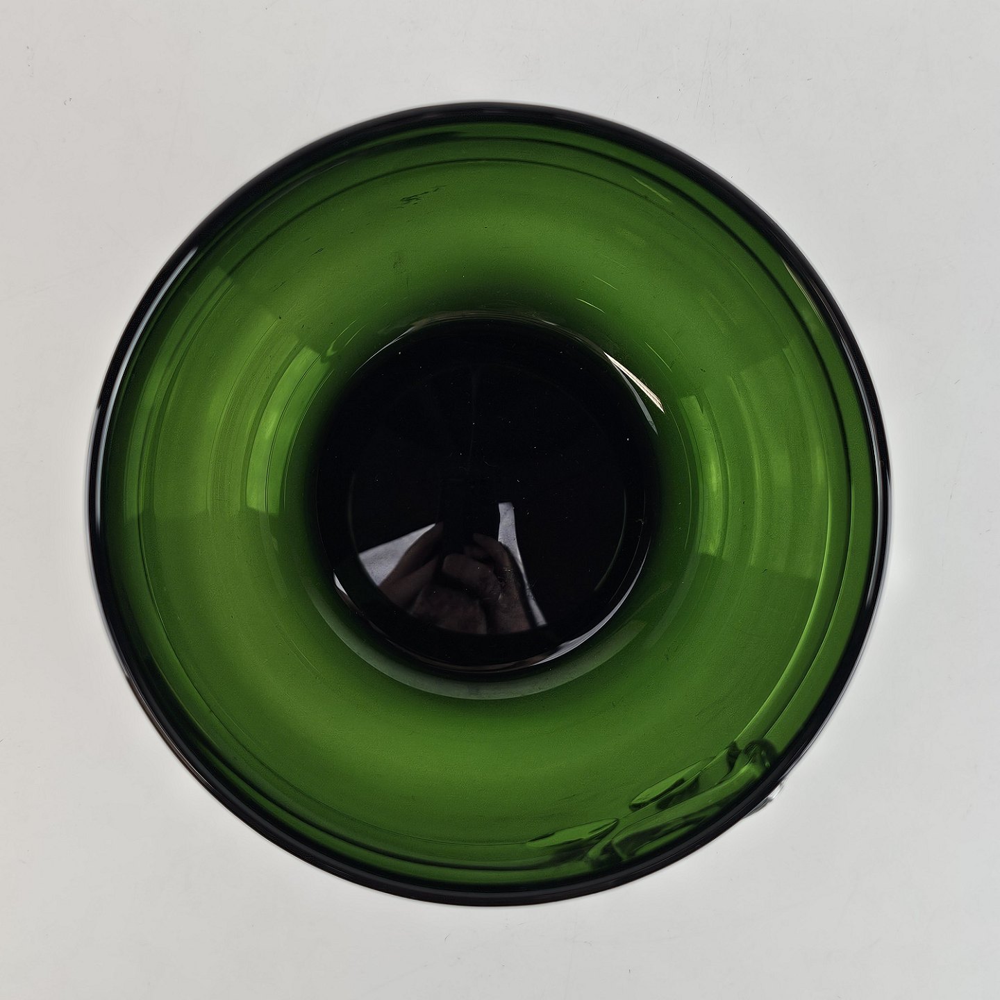 Urtepotteskjuler i grønt transparant glas, med en tråd af hvidt glas.