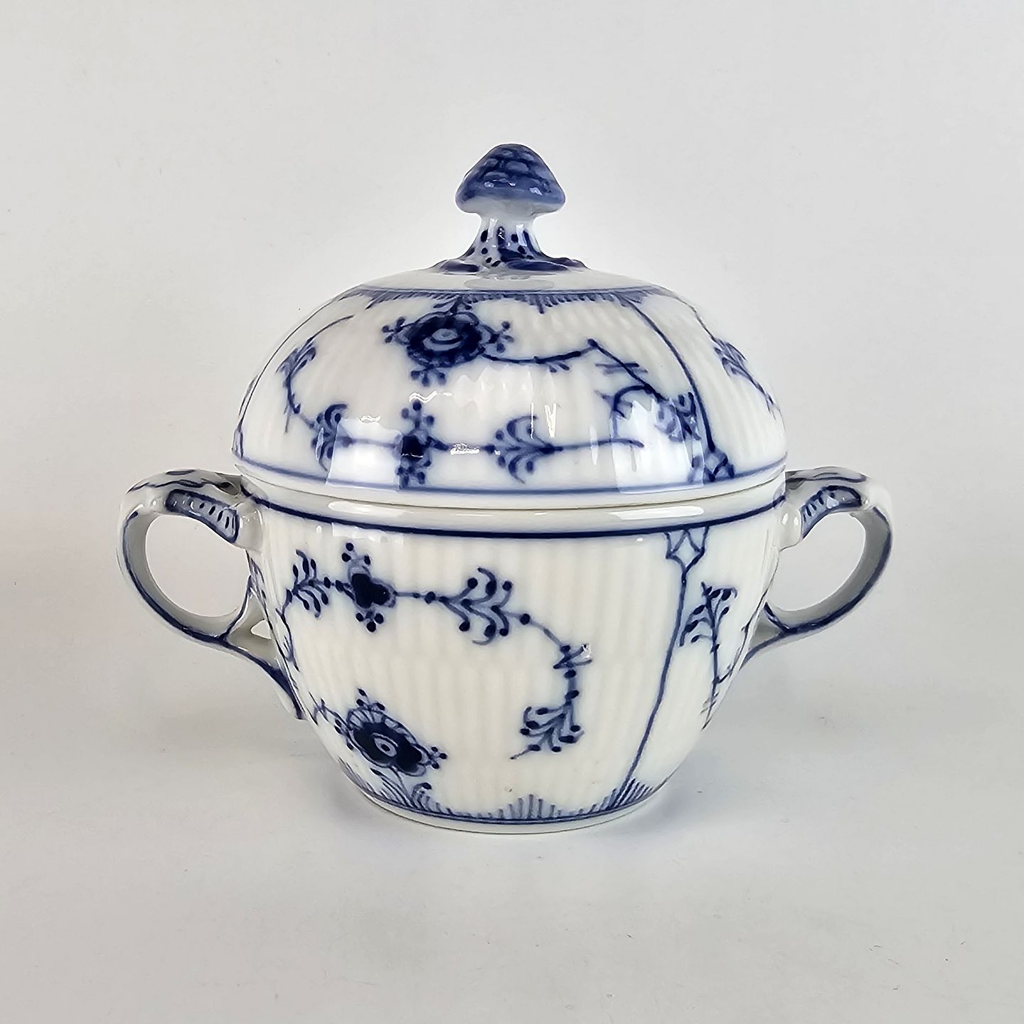 Sukkerskål i porcelæn fra stellet Riflet Musselmalet. Nr 244.