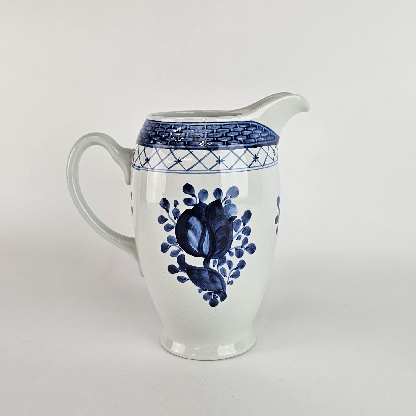 Glat hvid fajance med blå dekoration af blomster og blå bort