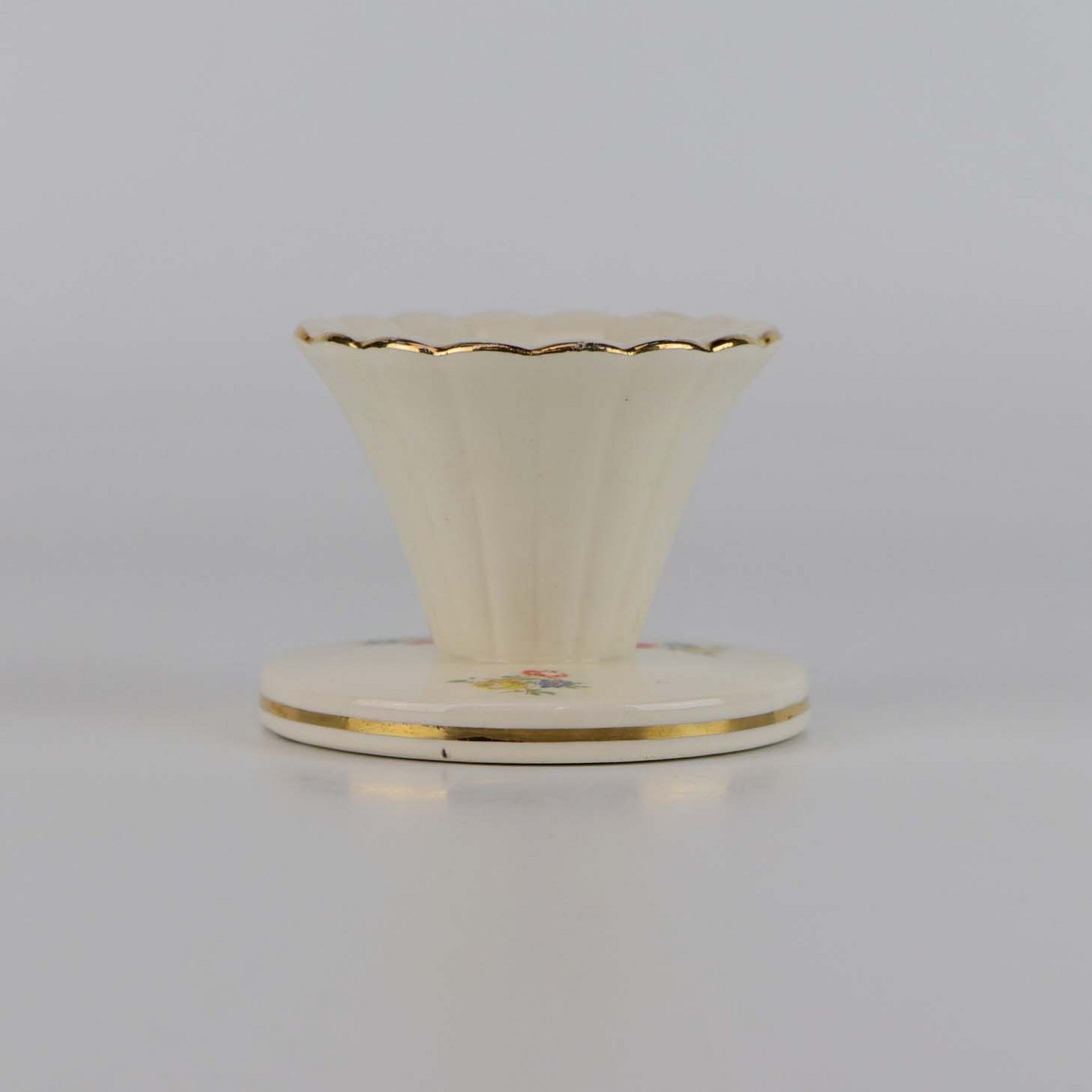 Anna Sofie er hvidt fajance dekoreret med guld kant og små farverige blomster