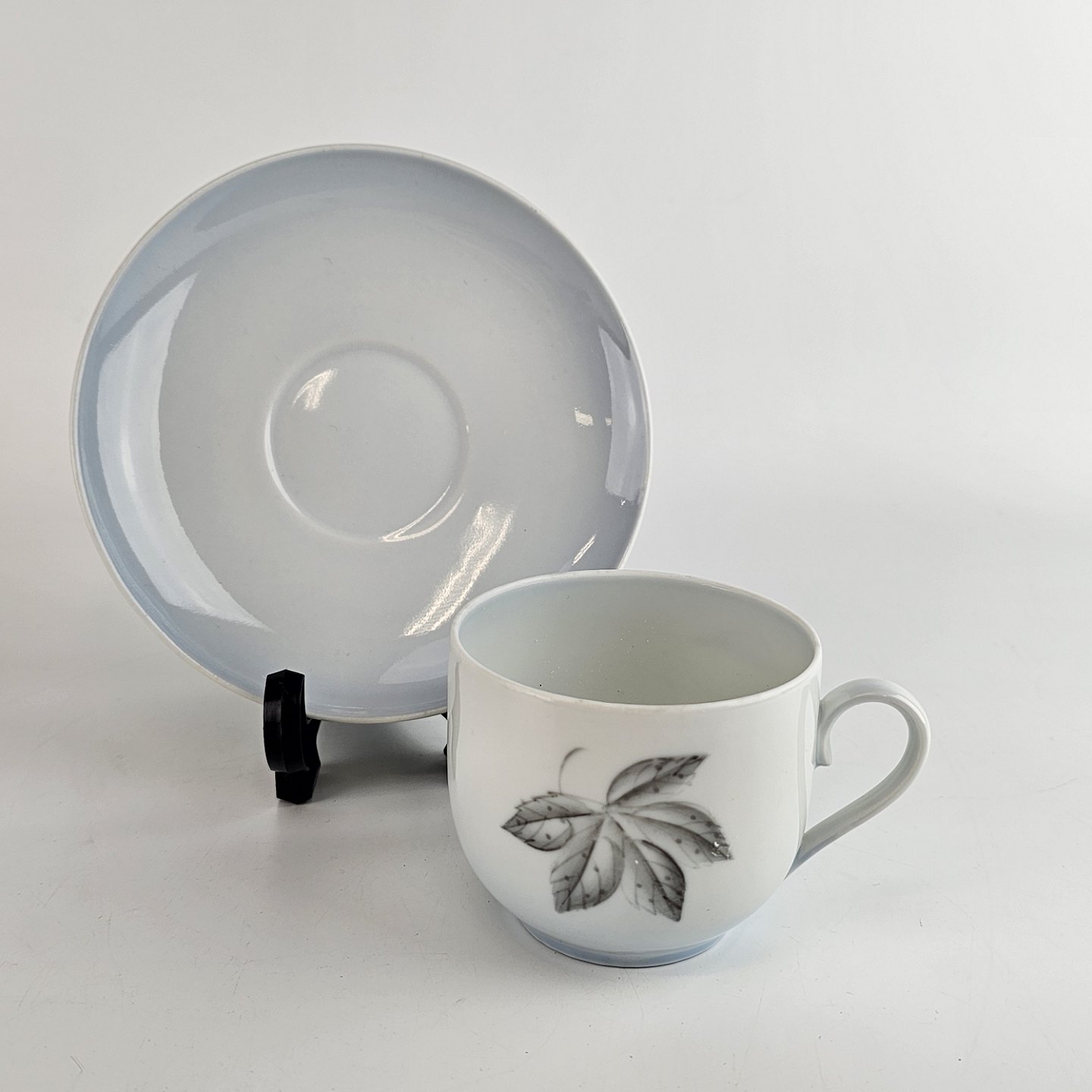 Kop og underkop i porcelæn fra stellet Løvfald. Nr 102.