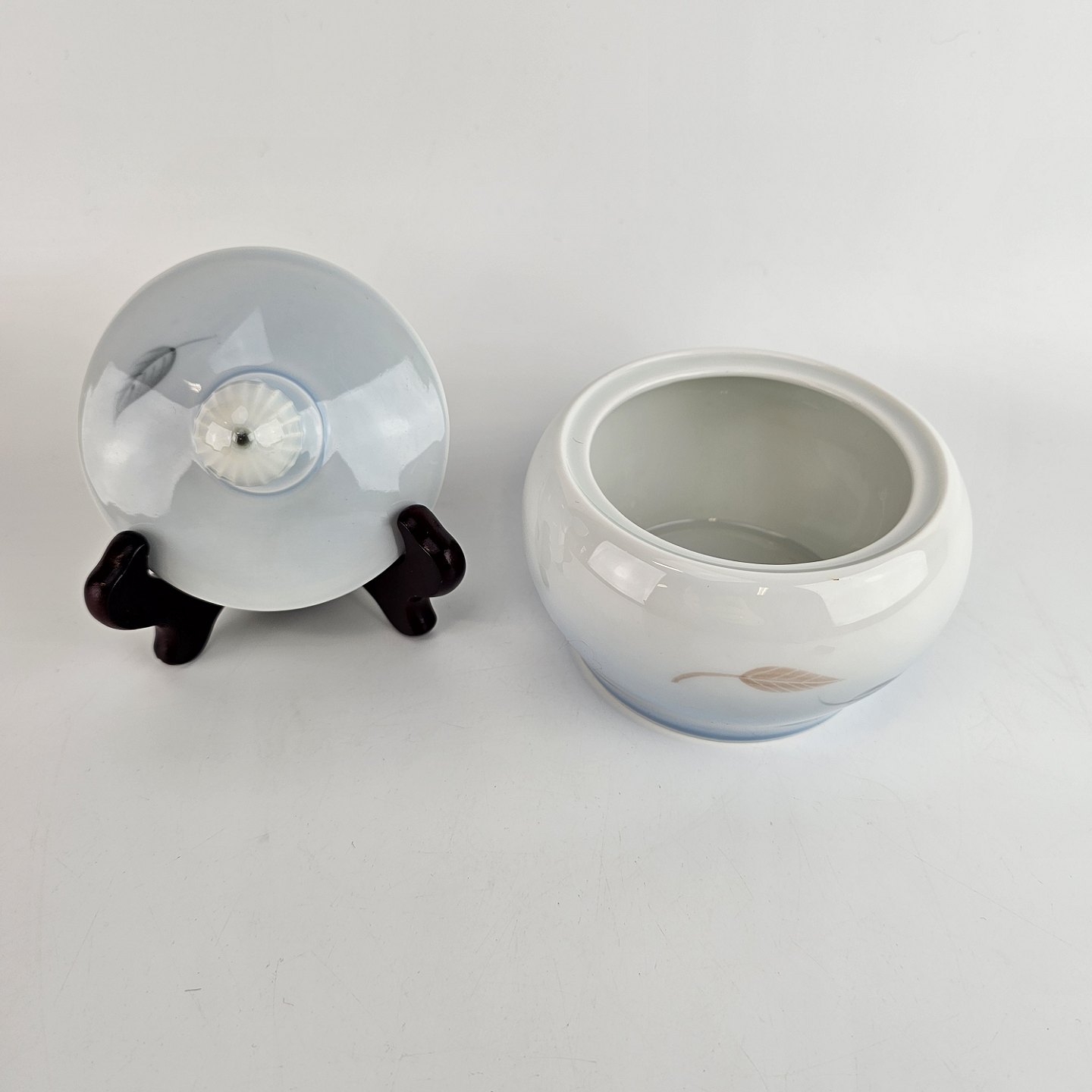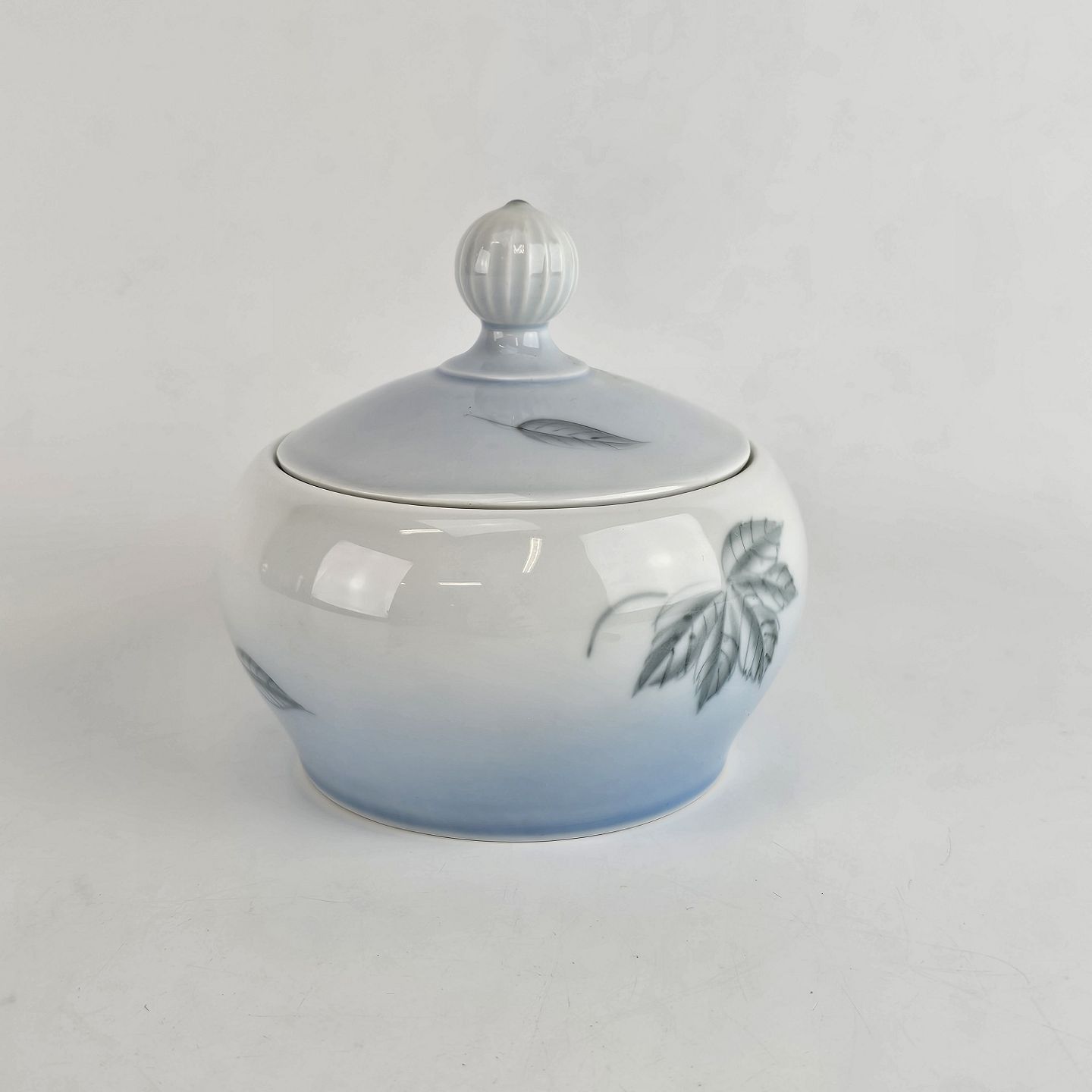 Sukkerskål i porcelæn fra stellet Løvfald. Nr 302.
