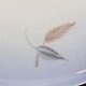 Løvfald er hvidt porcelæn som toner ud i blå, dekoreret med faldende blade i sort og rødt.