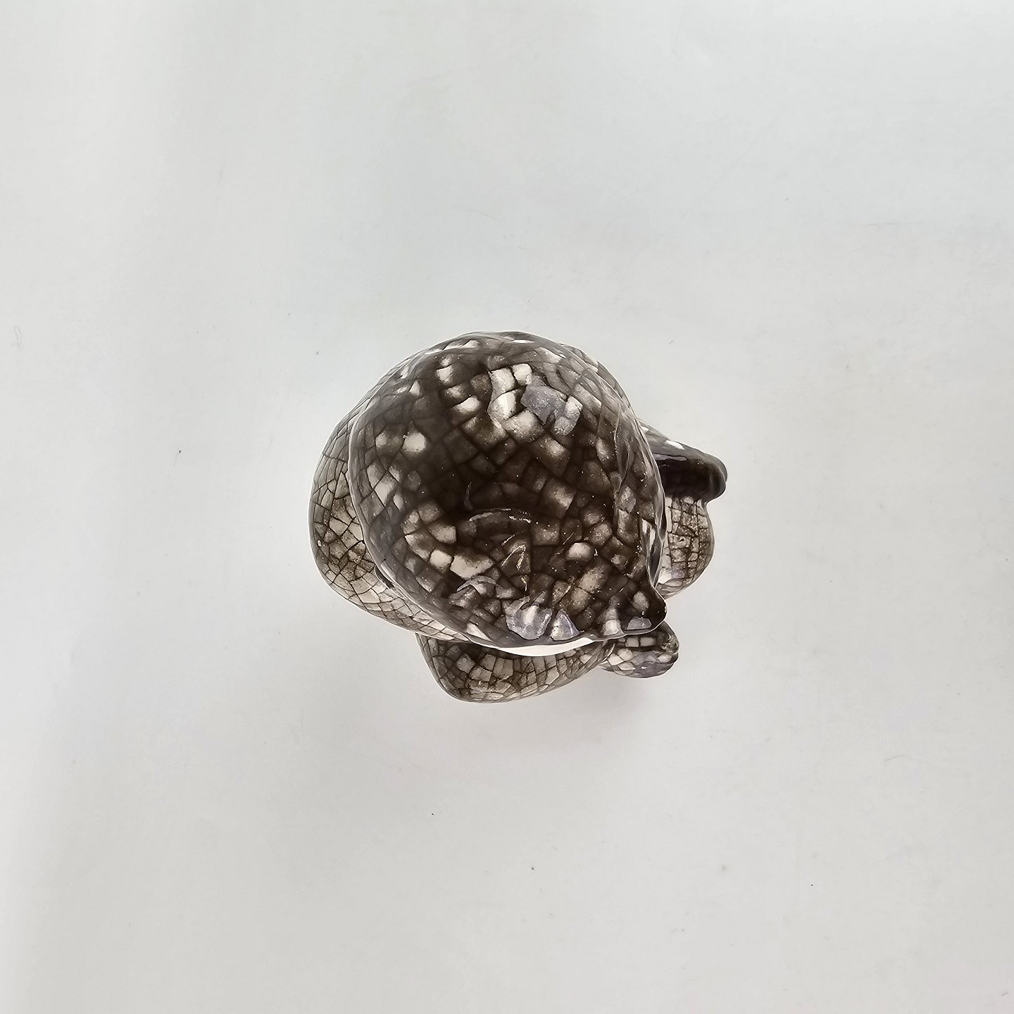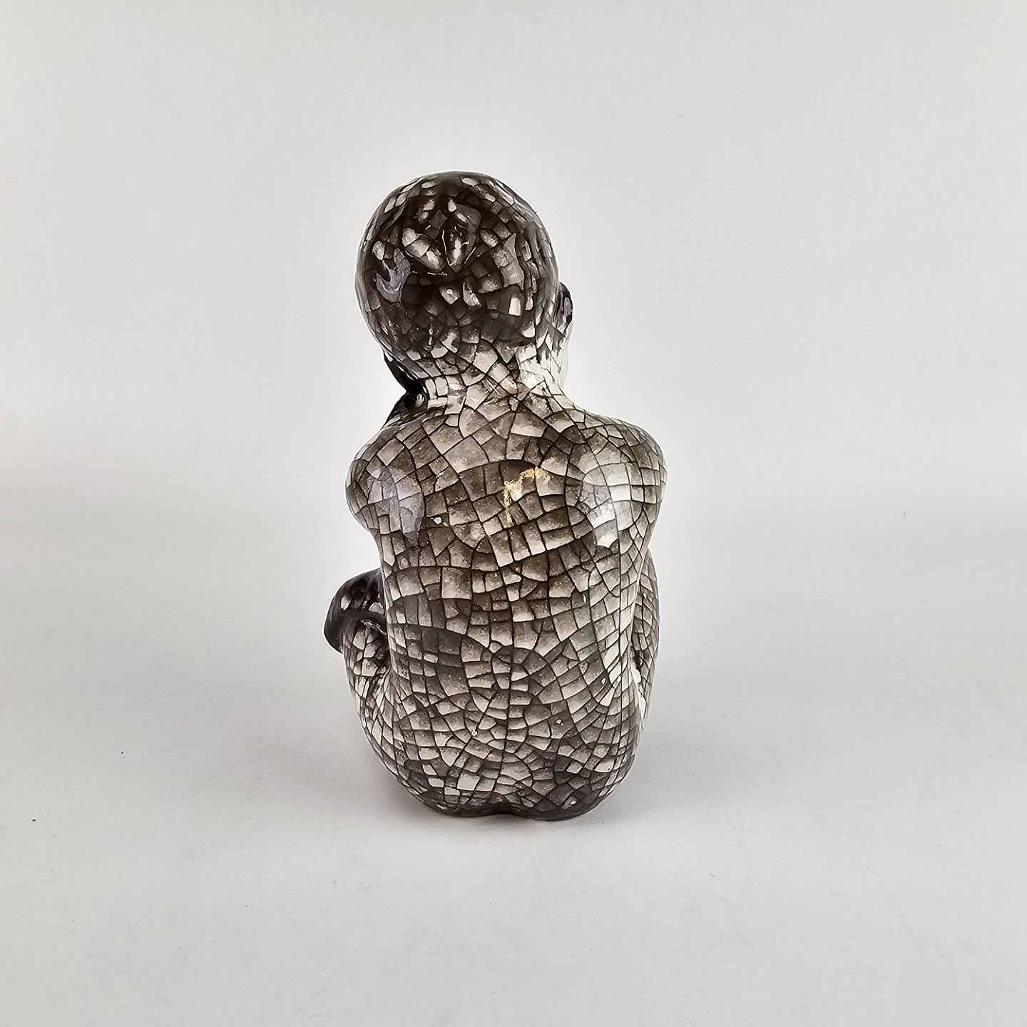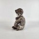 Figur med krakeleret udseende, med motiv af en lille dreng med en hundehvalp.