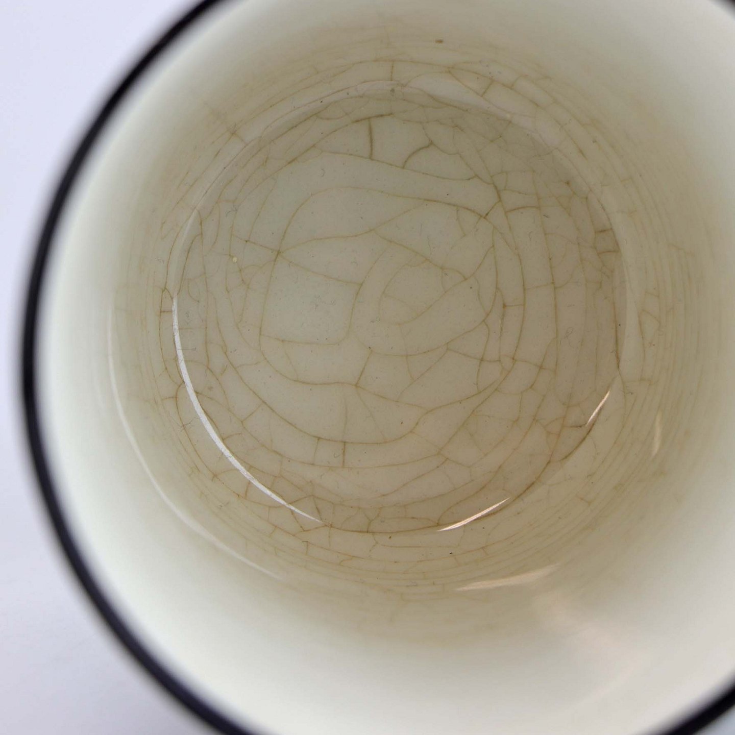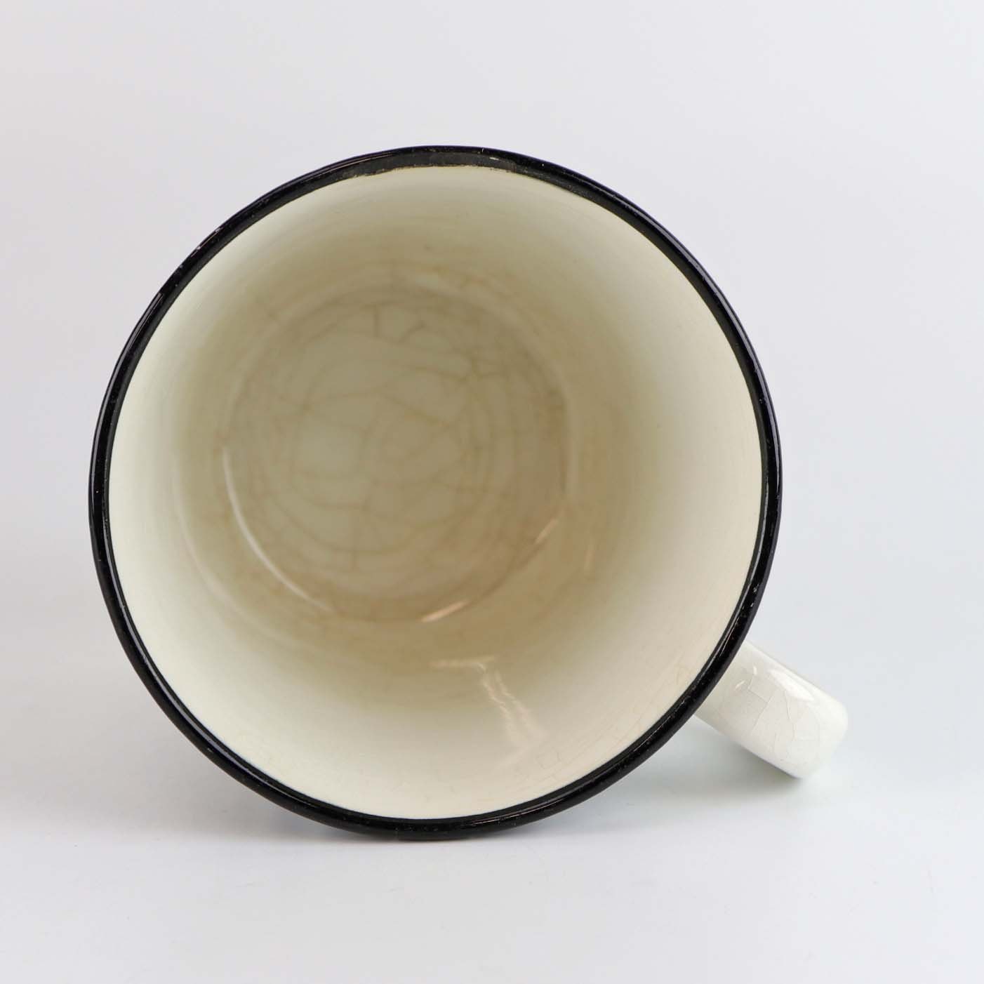 Fremstår med krakkeleret inderside af kop og ujævnheder i fajancen på bagsiden
