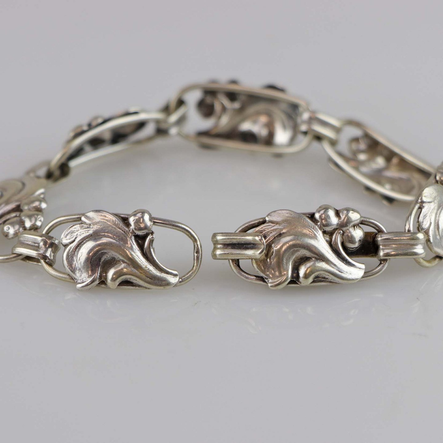 Armlænke i 830 sølv med motiv i skønvirke stilen