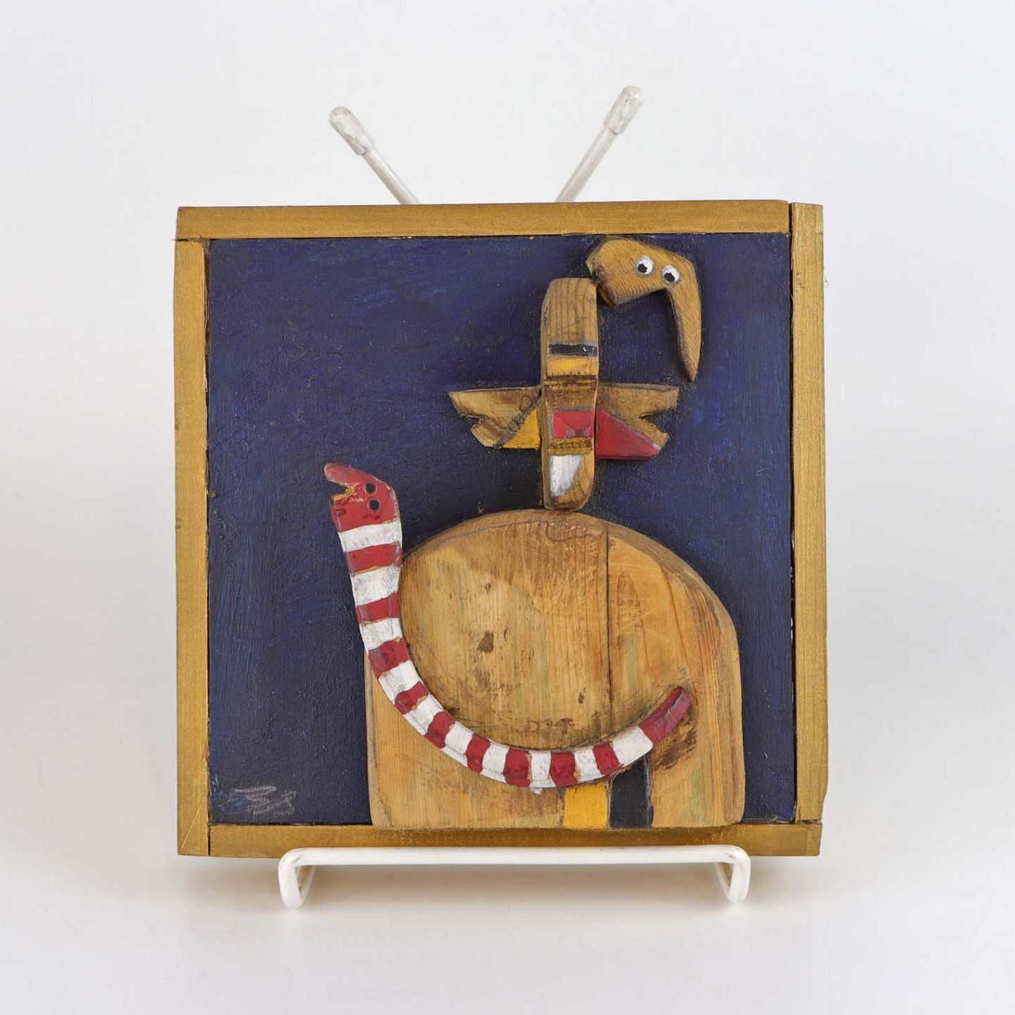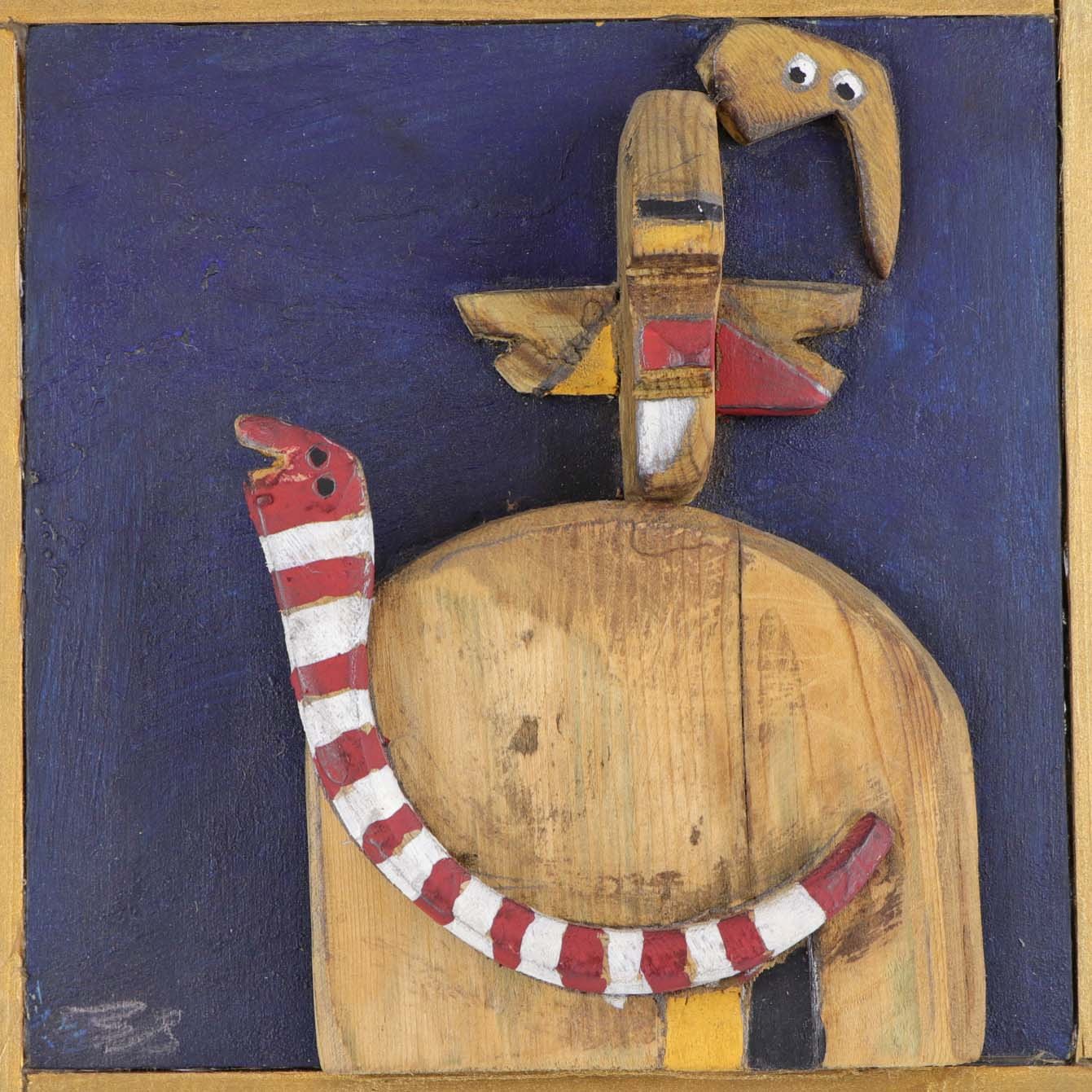 Relief i delvist malet træ fra 1989 med titlen Den røde orm