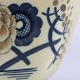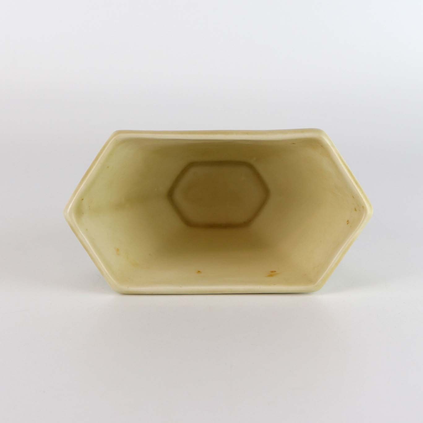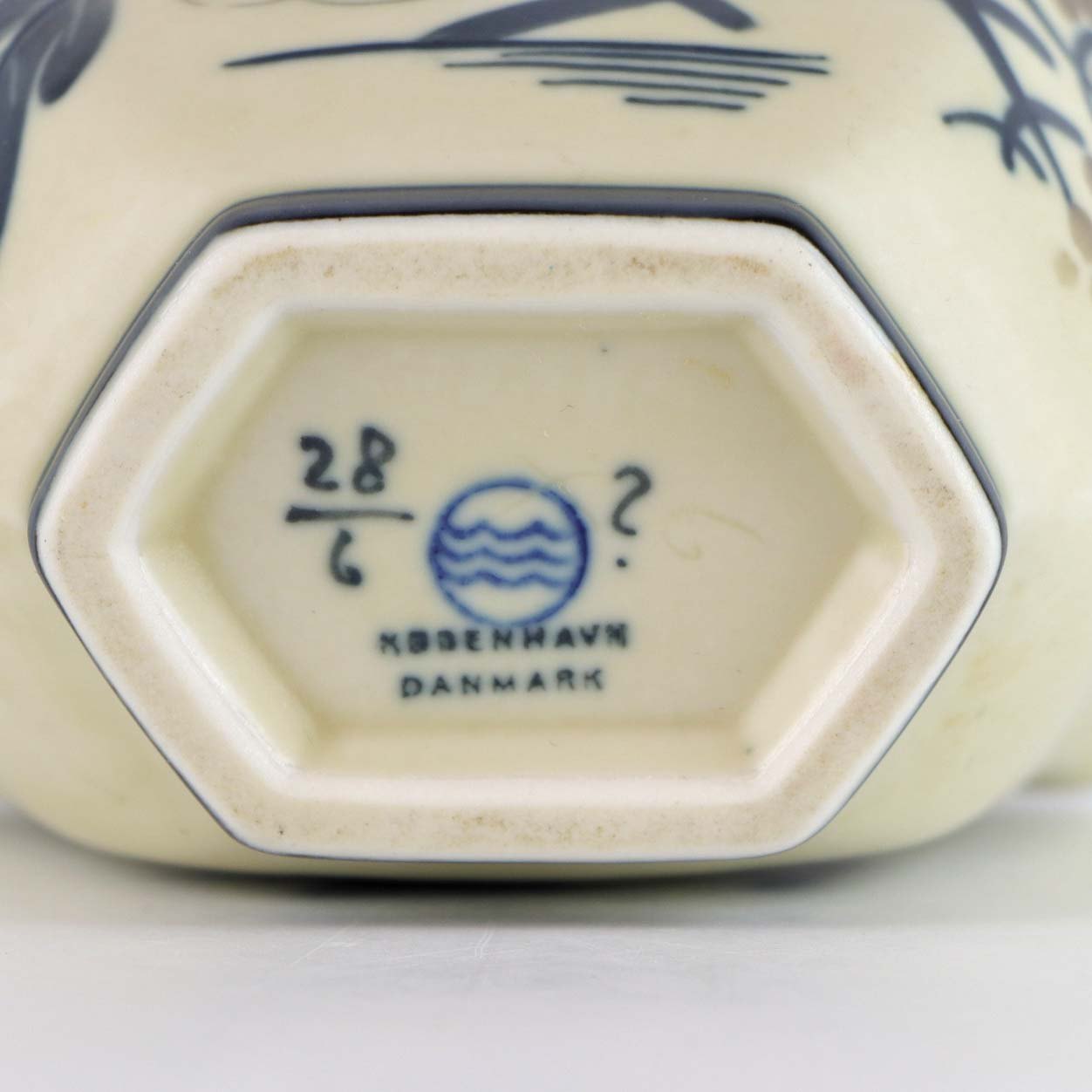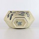 Kongelig sekskantet vase i mat porcelæn med motiv af blomster med blå streg på cremefarvet baggrund. Nr. 28/6