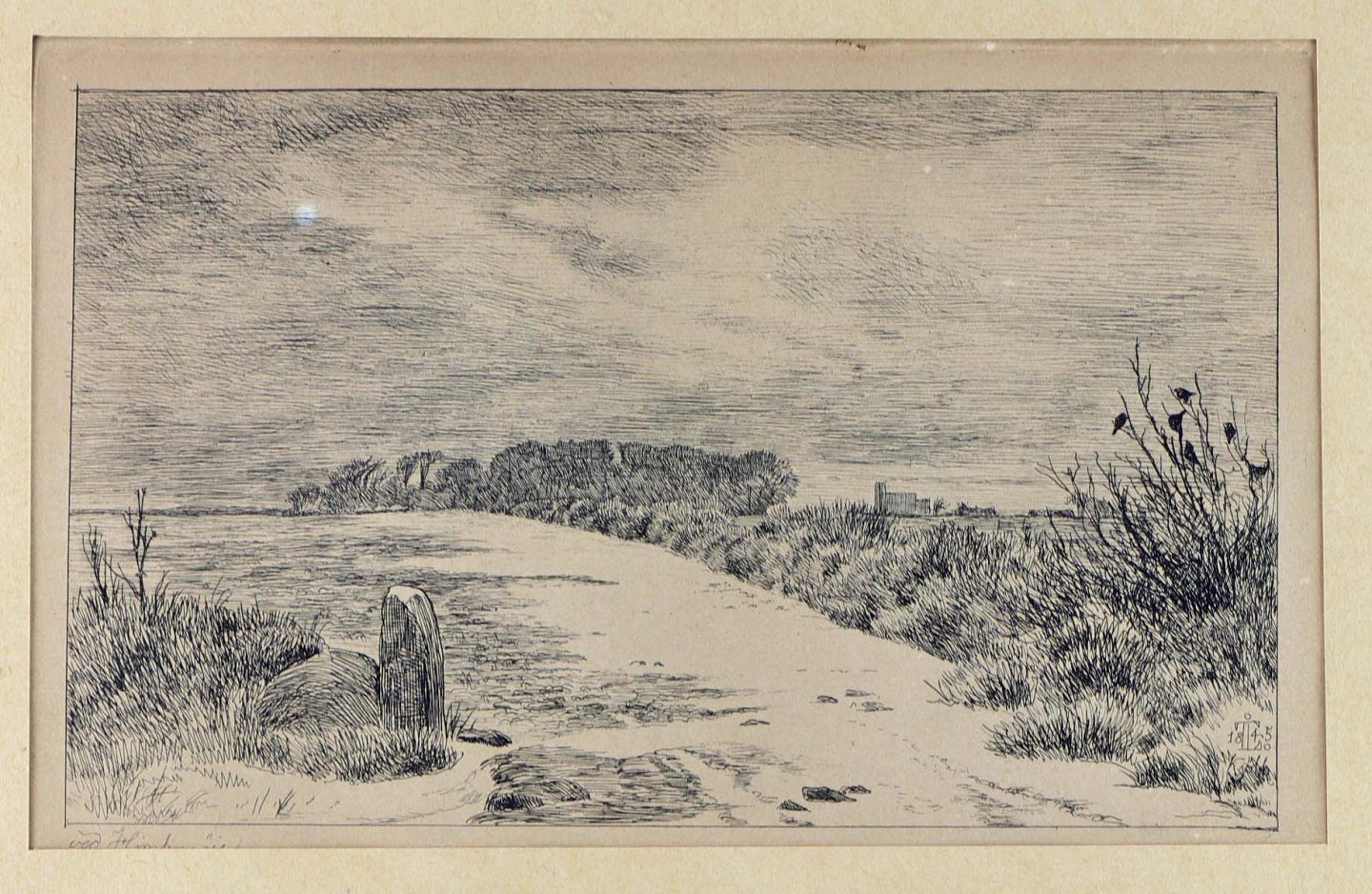 Raderingen har titlen Vinterlandskab ved Himlingøje. Dateret til år 1855.
