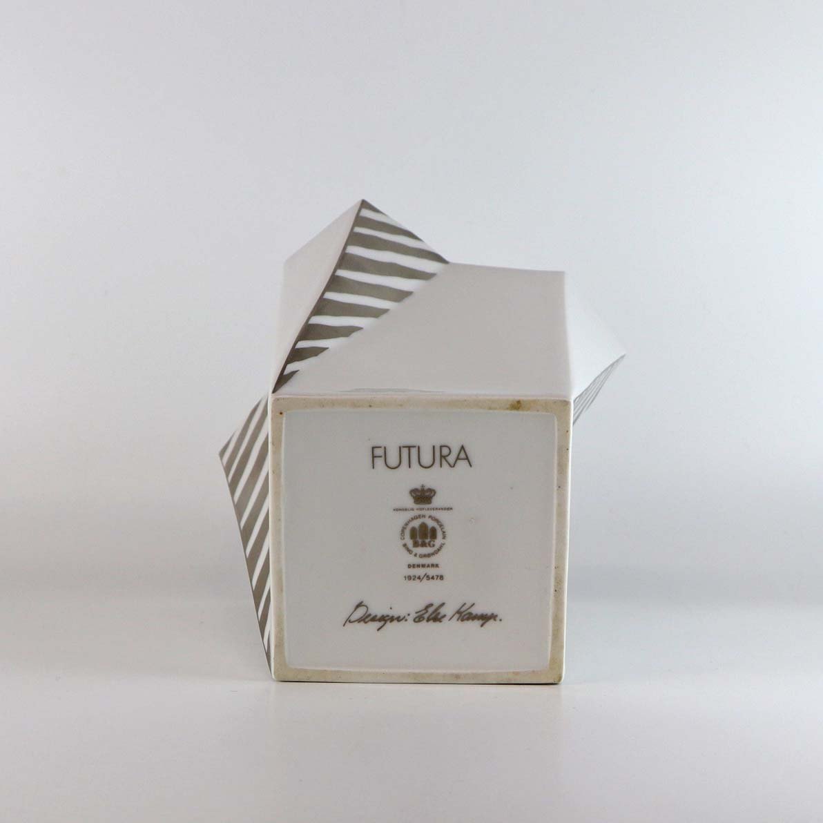 Kantet vase i hvidt porcelæn med sølvgrå stribet mønster. Model Futura. Nr. 1924/5478