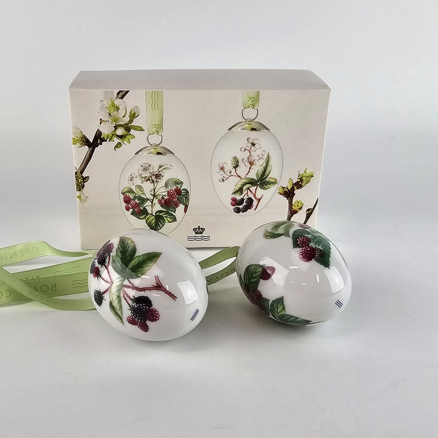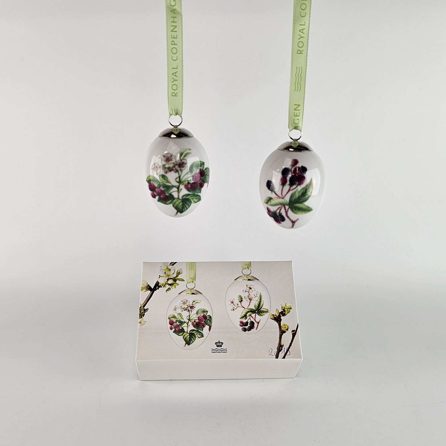 Påskeæg af kongelig porcelæn fra Forårskollektionen år 2015, med motiv af hindbær og brombær.