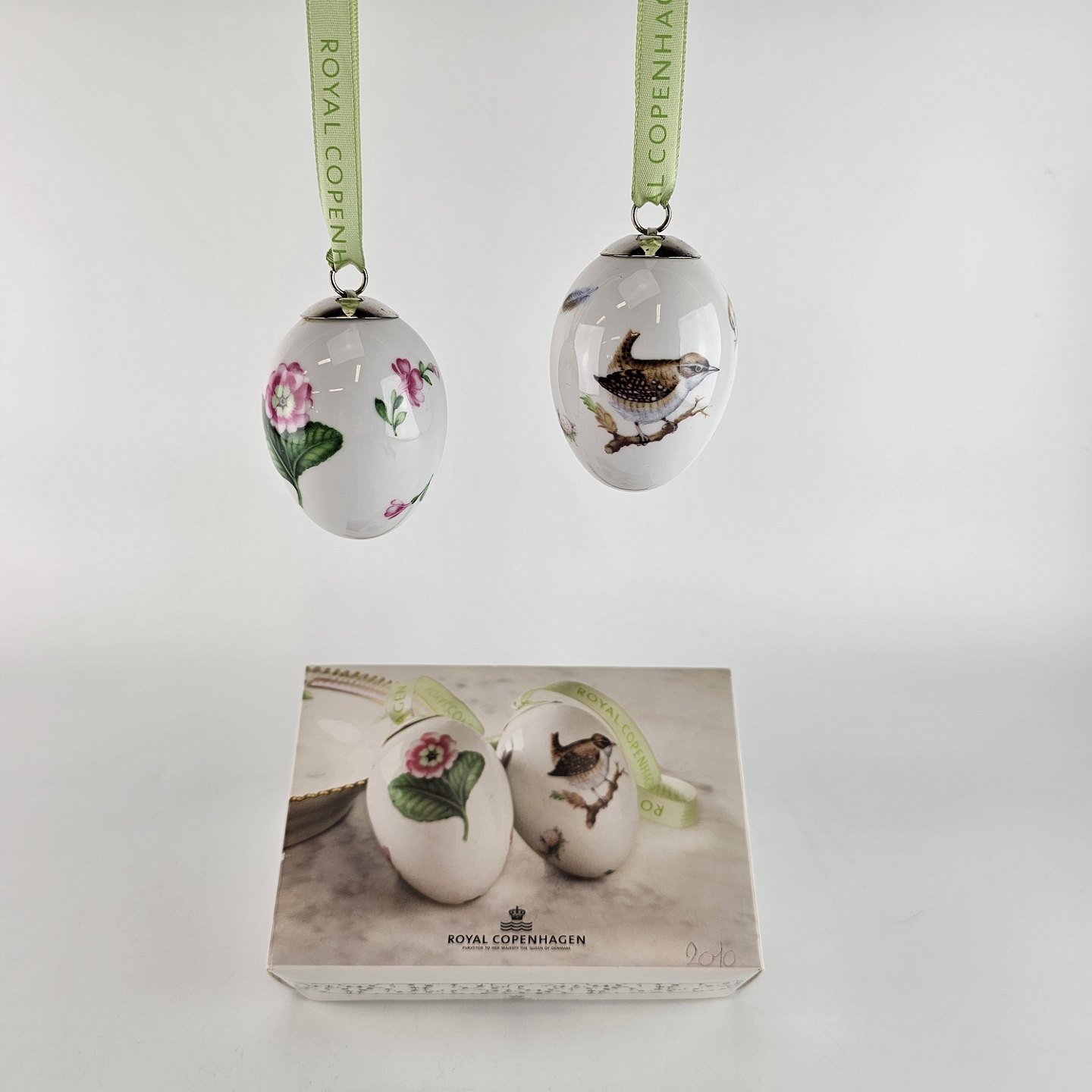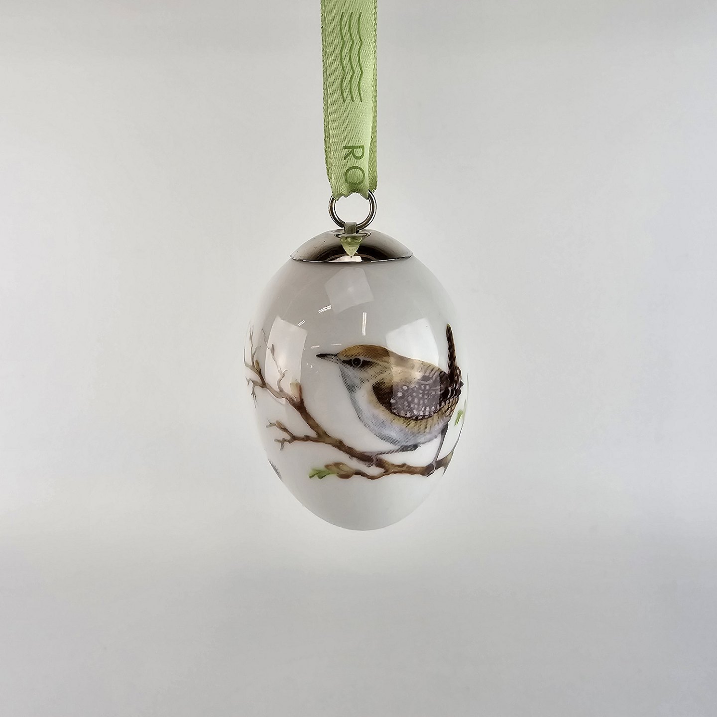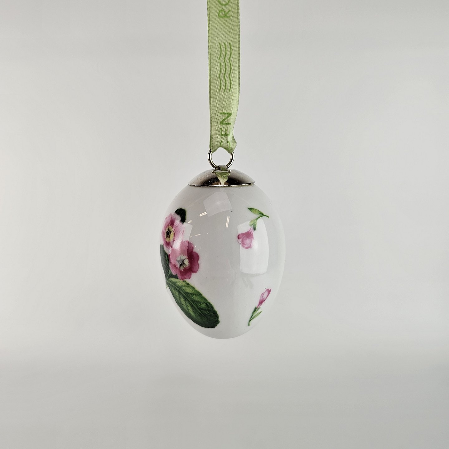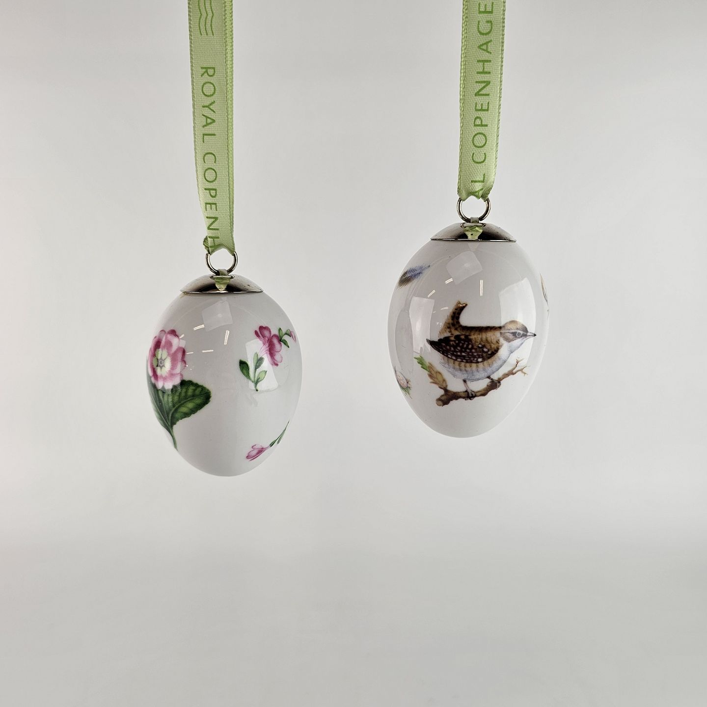 Påskeæg af kongelig porcelæn fra Forårskollektionen år 2010, med motiv af primula og gærdesmutte.