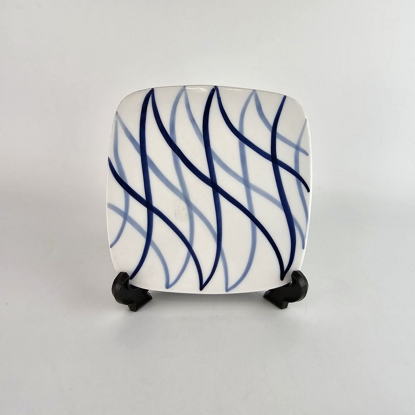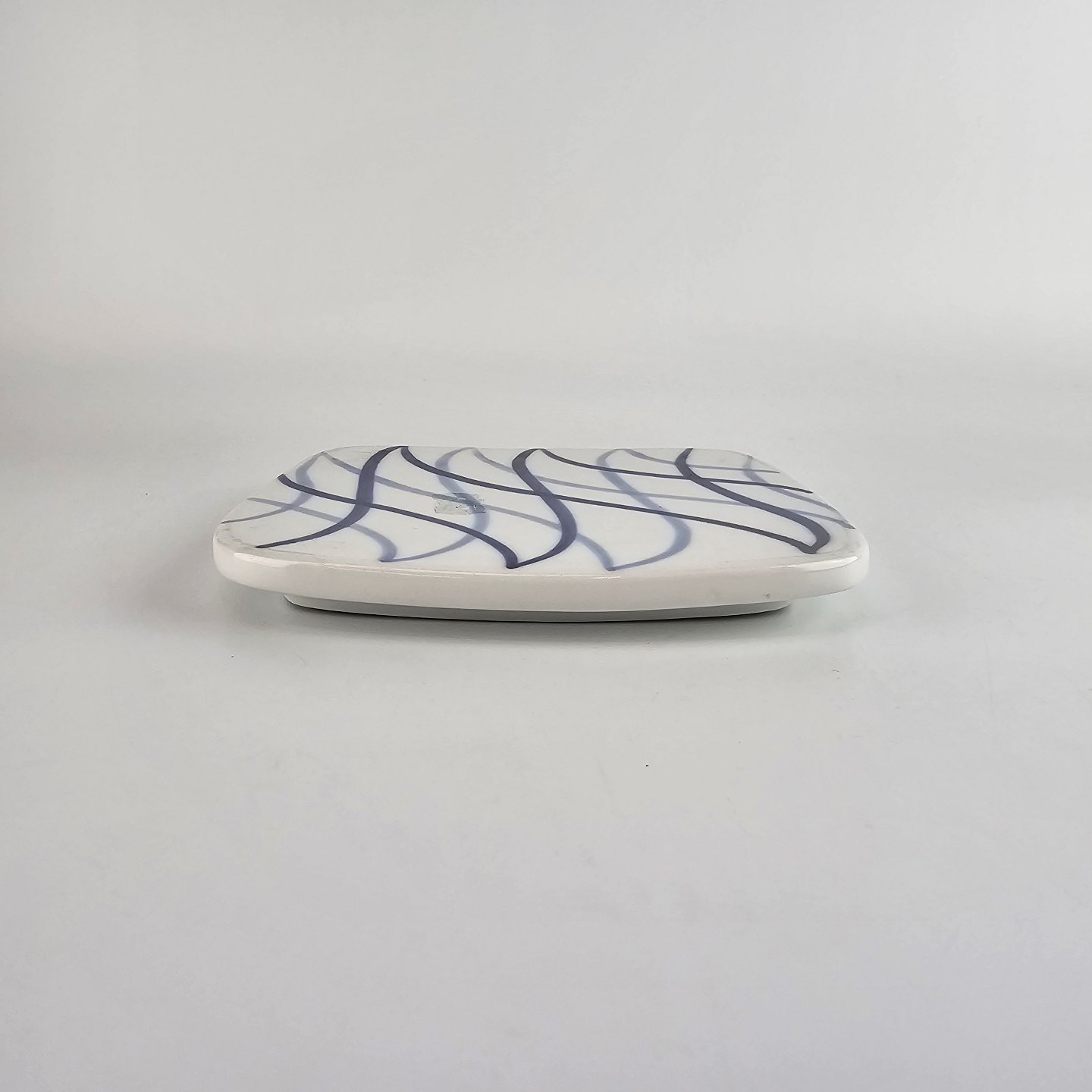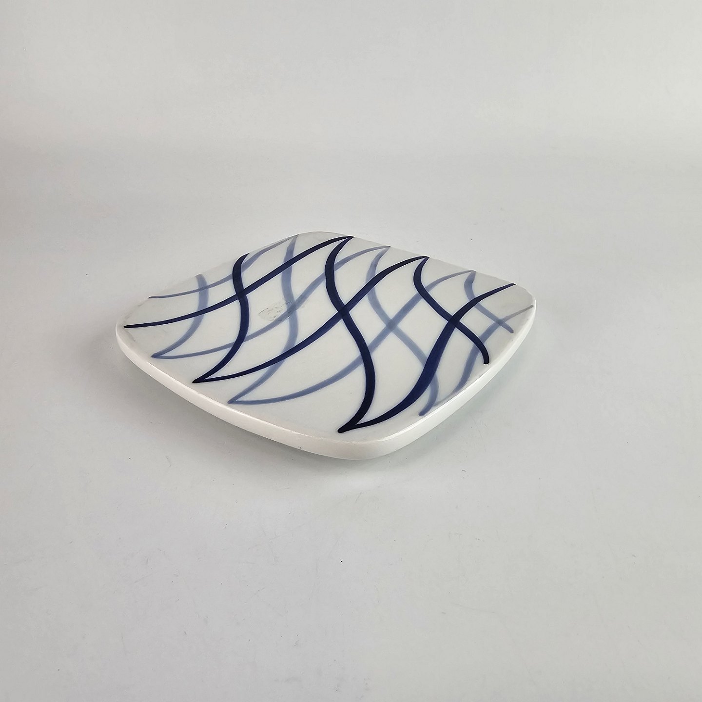 Blå Flamme er hvidt ildfast porcelæn, dekoreret med blå striber, der ligner flammer.