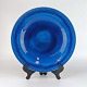 Fad til bord i blå glaseret keramik med linjeret kant motiv