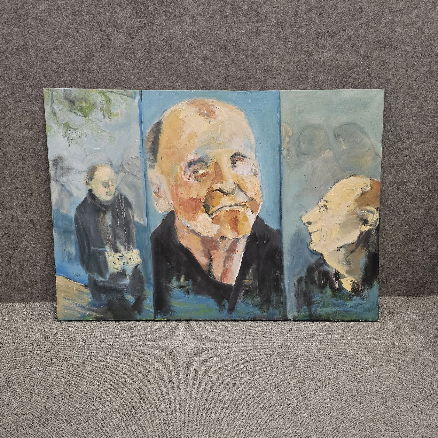 Tredelt portrætmaleri med motiv af en mand set fra flere sider. Olie på lærred.