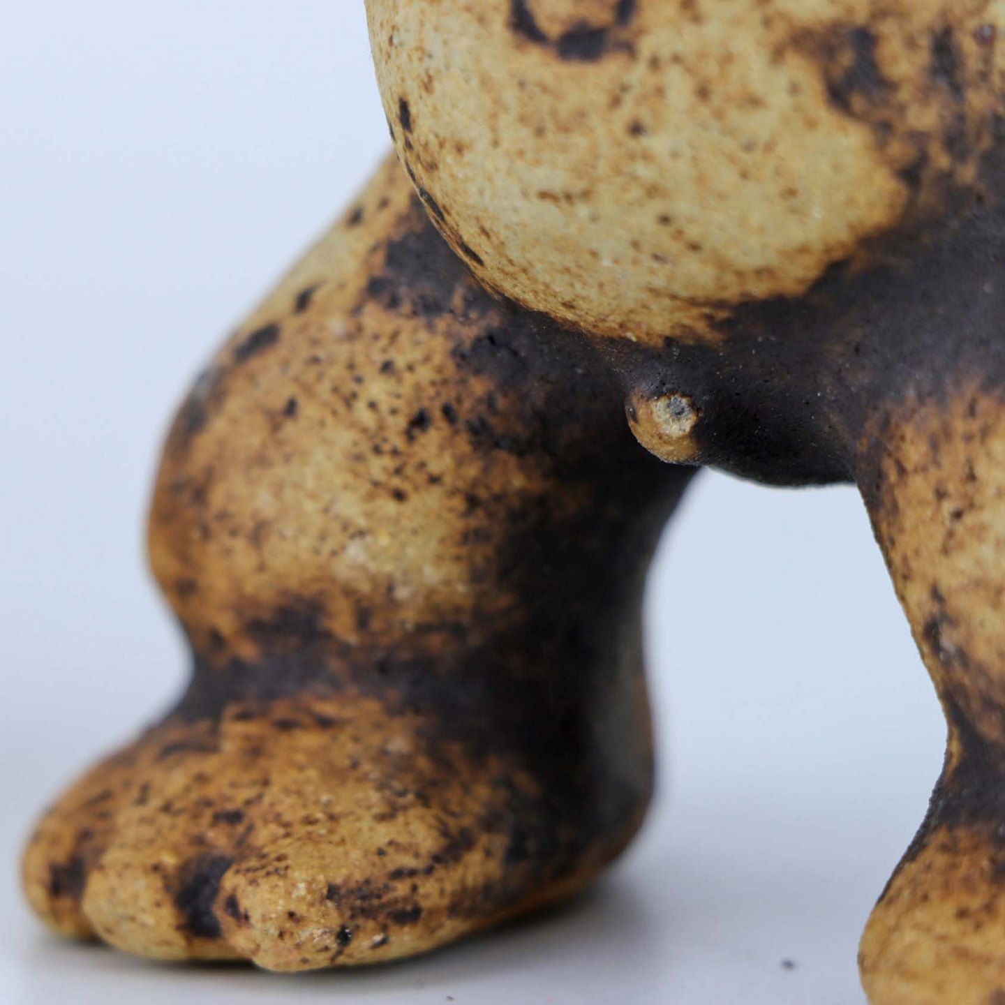 Fremstår med mindre nøk mellem benene på padden samt mindre brugsspor ved paddens skuldre.