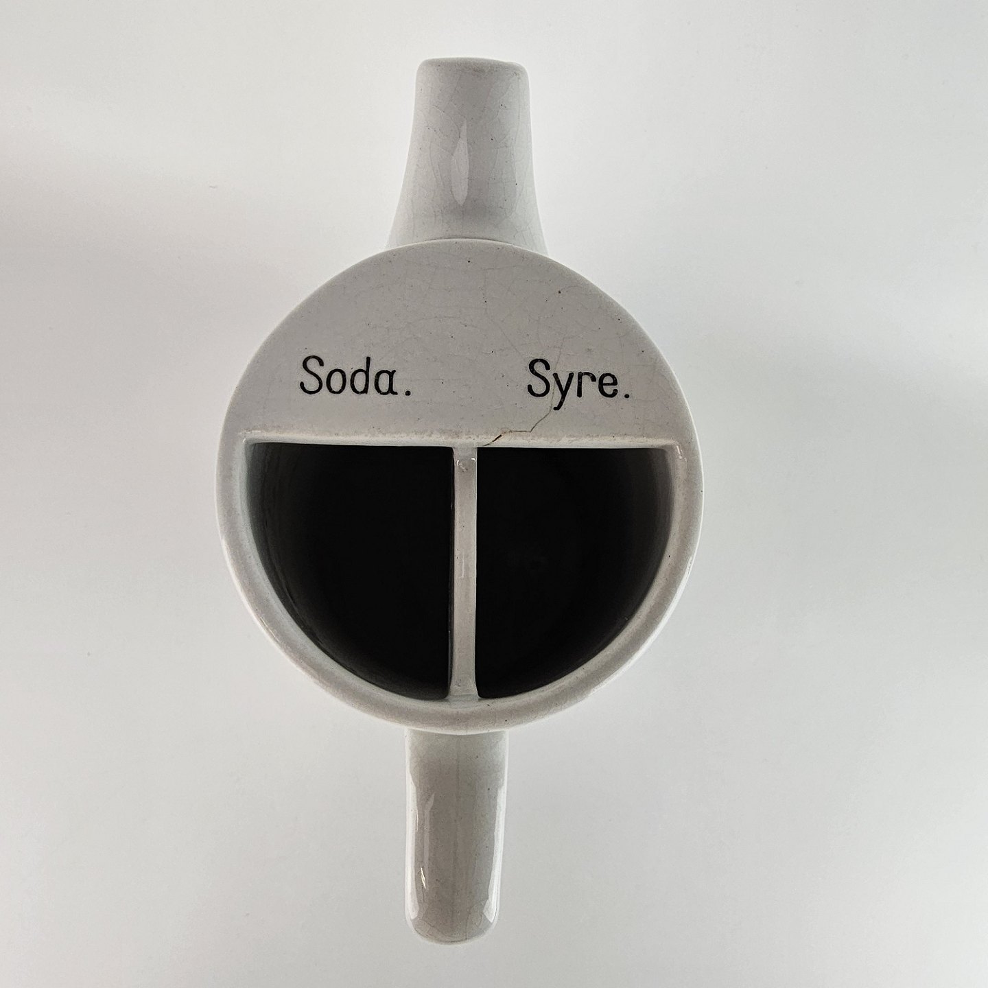 Beregnet til soda og syre. Kanden er krakeleret.