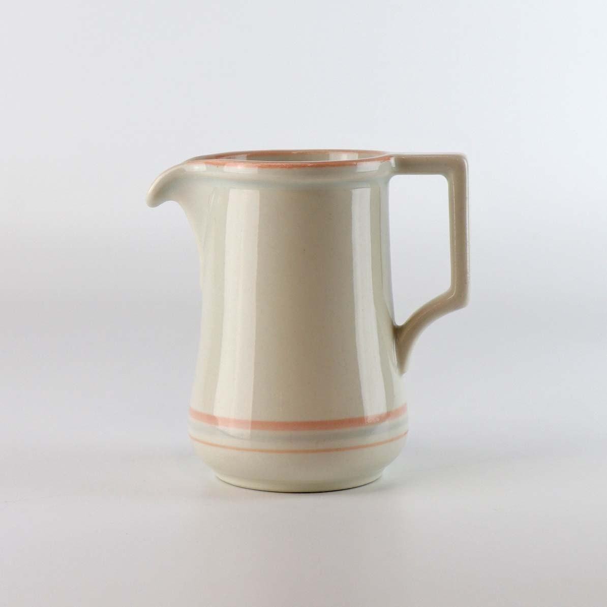 Siesta er fremstillet i lyst glaseret stentøj med lyserøde og lyseblå stribet mønster.