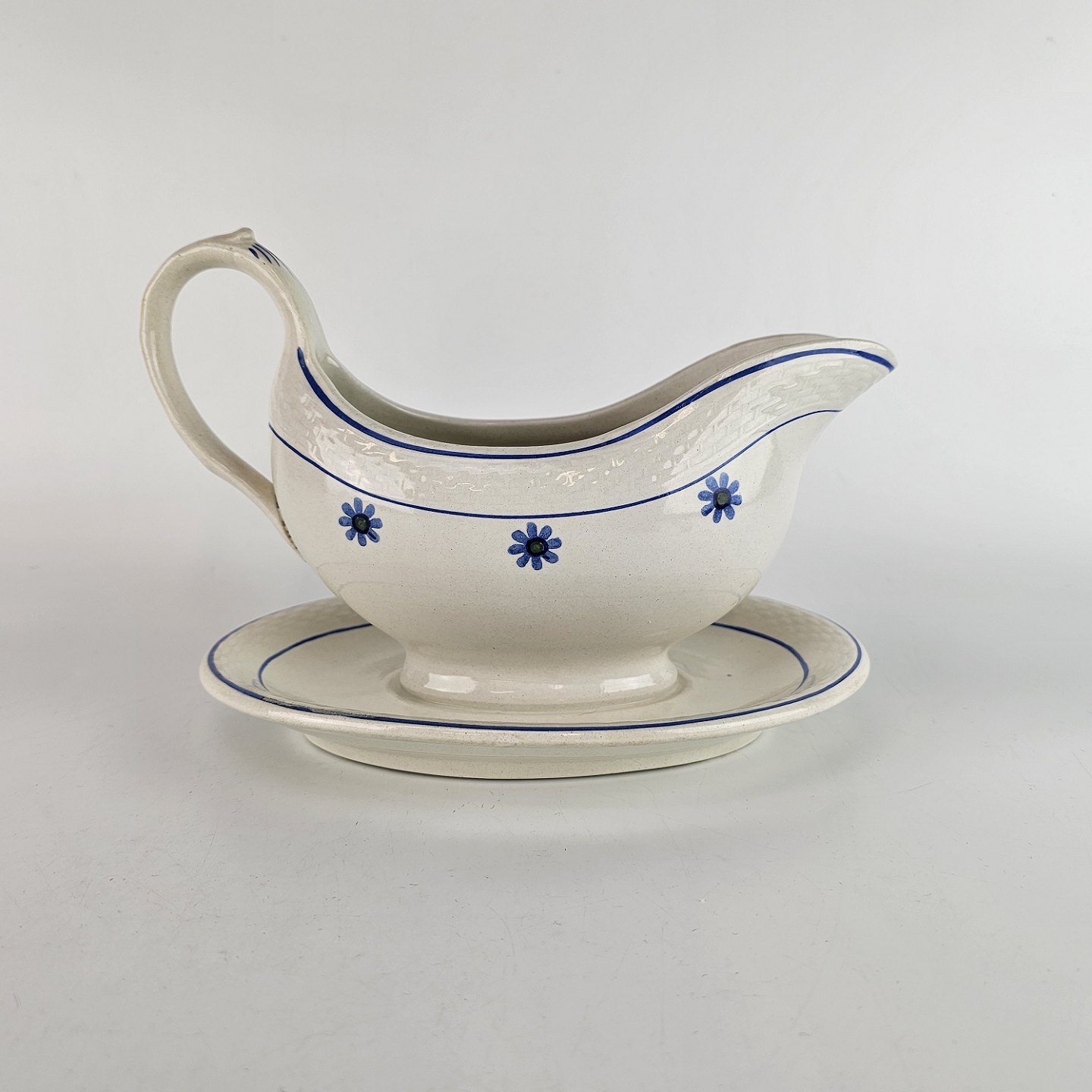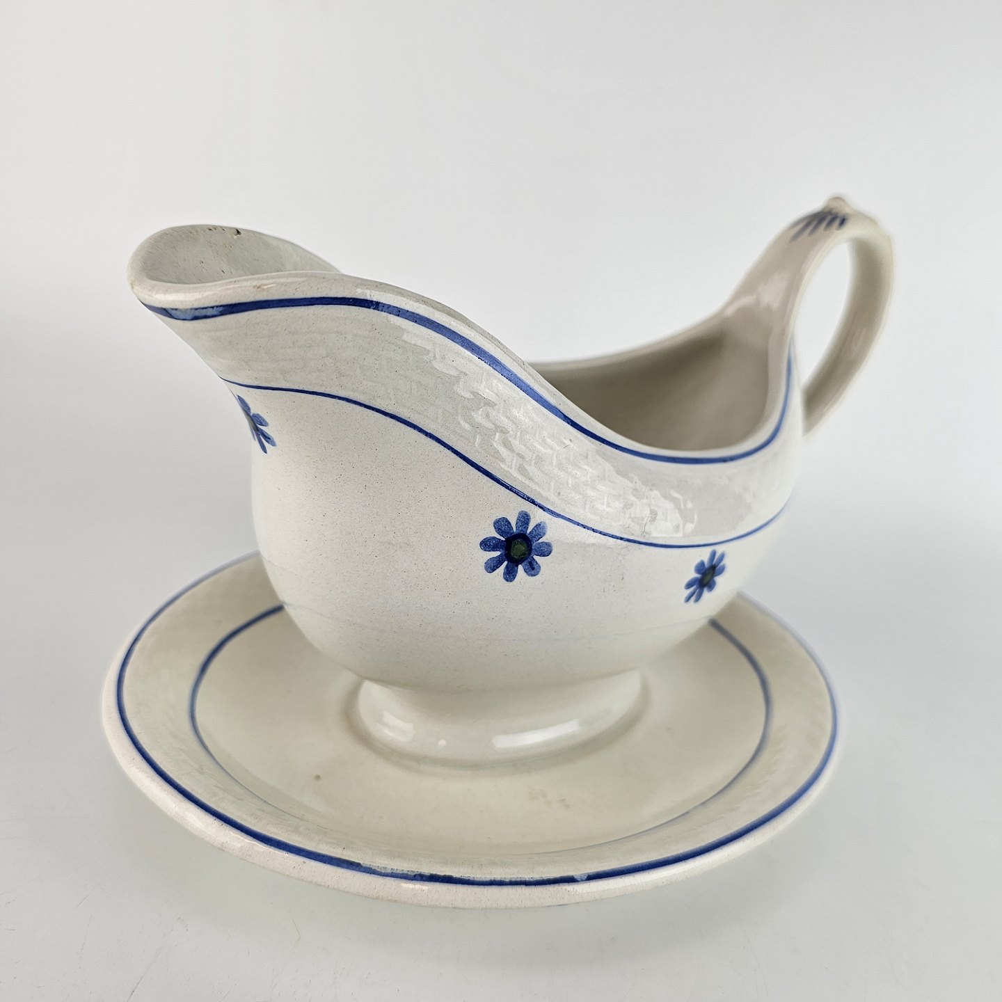 Sovsekande i fajance, dekoreret med blå streger og tre små blå stjerner på hver side.