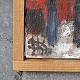 Oliemaleri på lærred i træramme med byskabsmotiv titlen Huse og træer - efterår. Dateret 1982
