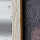 Oliemaleri på plade i hvidmalet træramme med motiv af kvinde i byskabsområde.