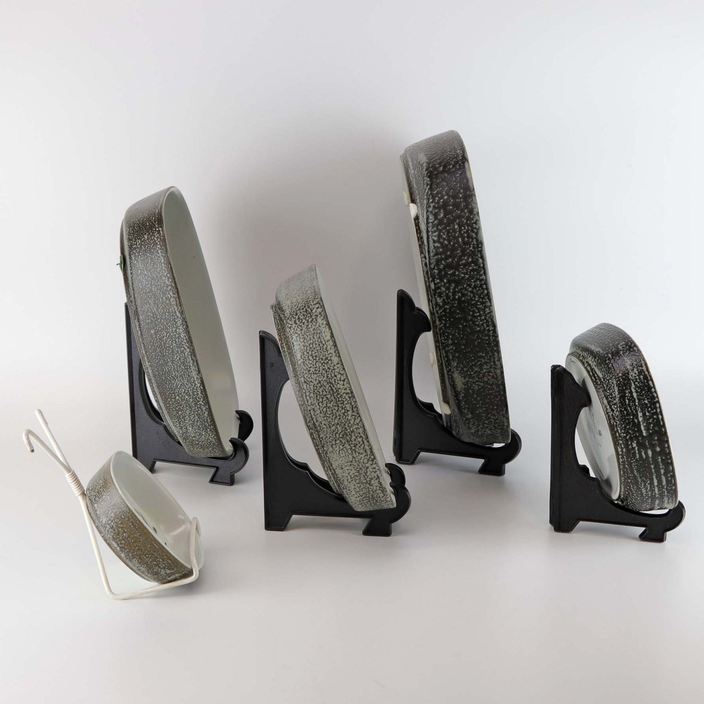 Fade i fajance i fem forskellige størrelser fra Baca serien. Fadene har en firkantet form med abstrakt mønster i hvide og brunlige nuancer. Nr. 963/3771. Nr. 963/3772. Nr. 963/3773. Nr. 963/3774 og Nr. 963/3775