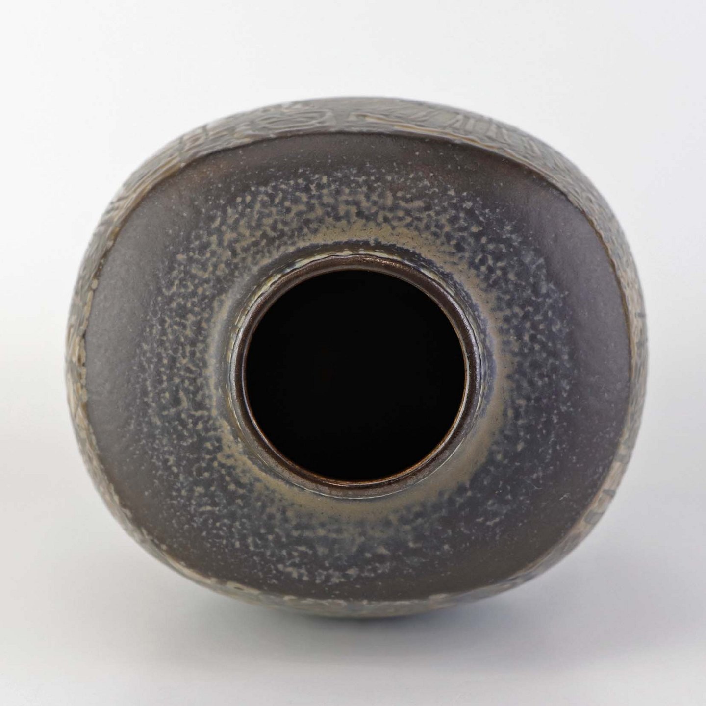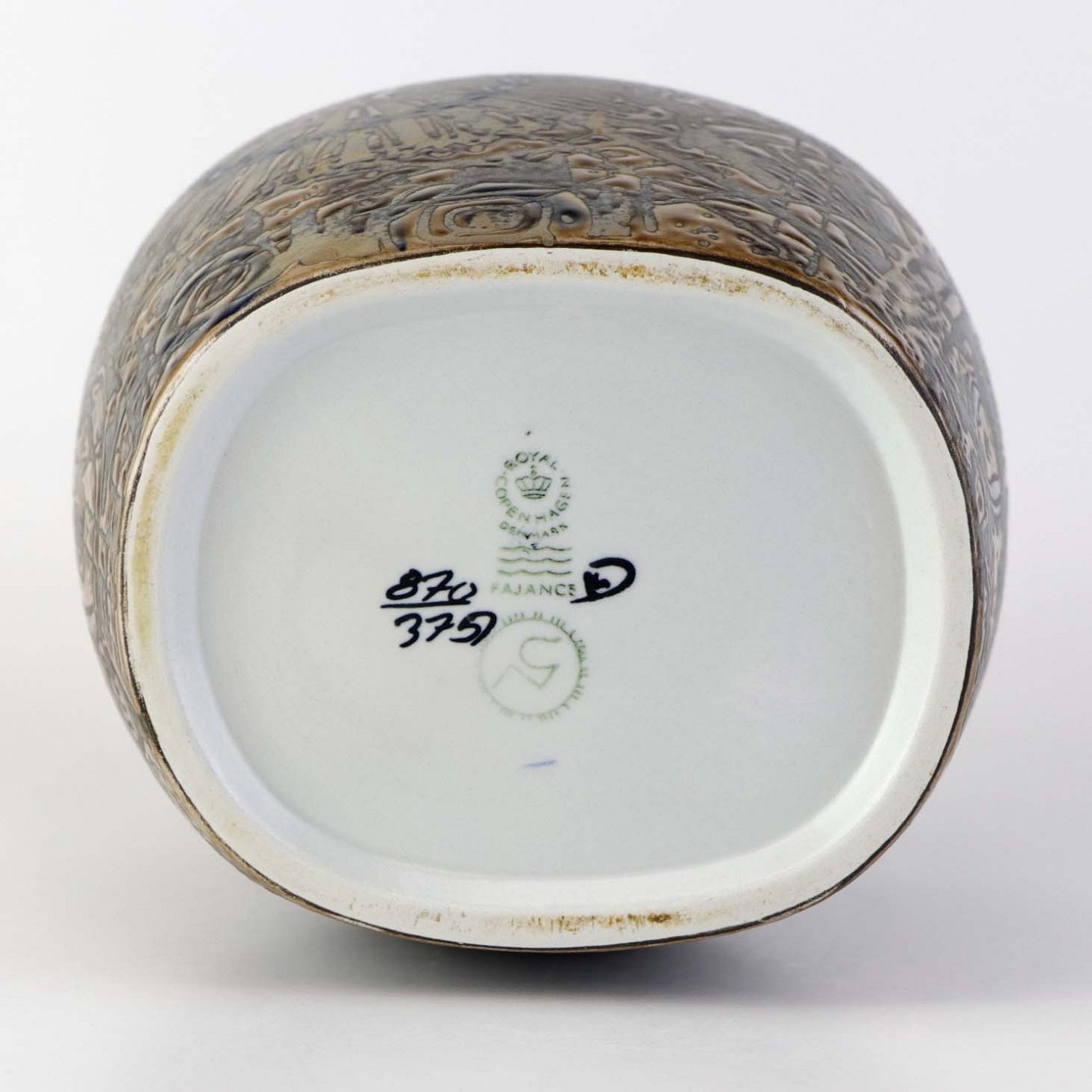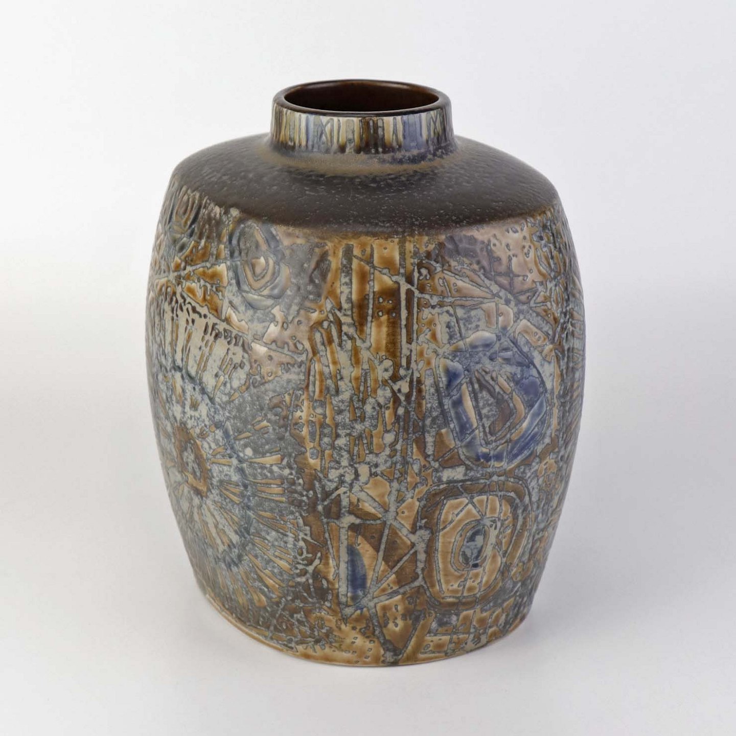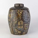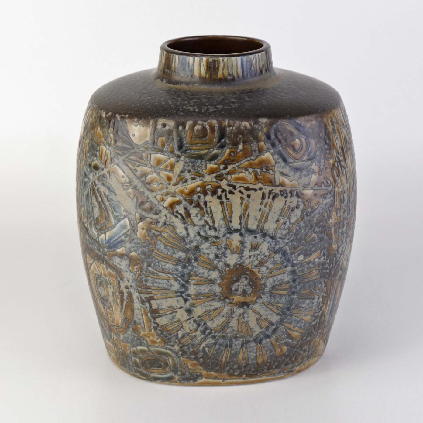 Kantet vase i fajance med mønster i brune nuancer. Nr. 870/3757